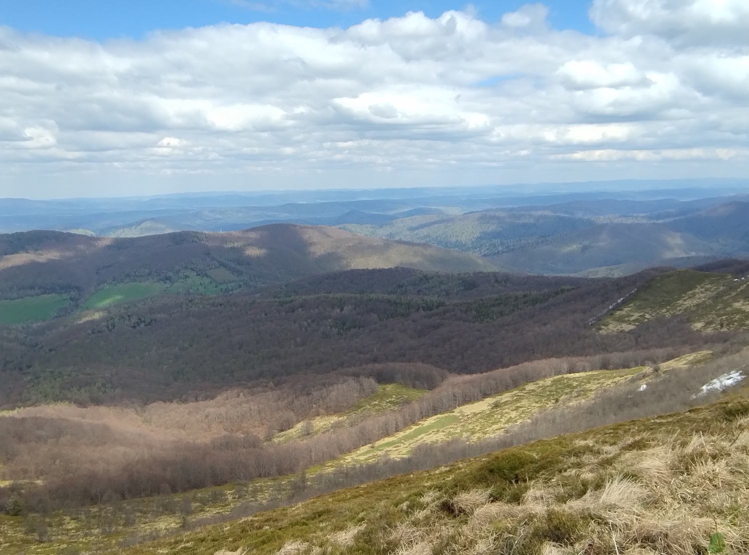 Na Połoninę Caryńską wybraliśmy się we wtorek koło południa, pogoda była piękna, trochę chmurek i słoneczko. Samochód zostawiliśmy na parkingu i zaopatrzenia w wodę i czekoladę pieliśmy się po stromym zboczu na szczyt. Zadyszka i brak tchu dawał znać że nasza kondycja była kiepska ale po kilu dłuższych postojach dotarliśmy do szczytu. Po upamiętnieniu tego faktu na zdjęciach zejście było o wiele lżejsze.