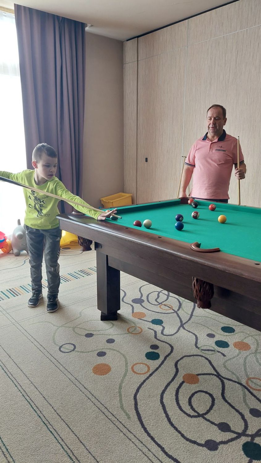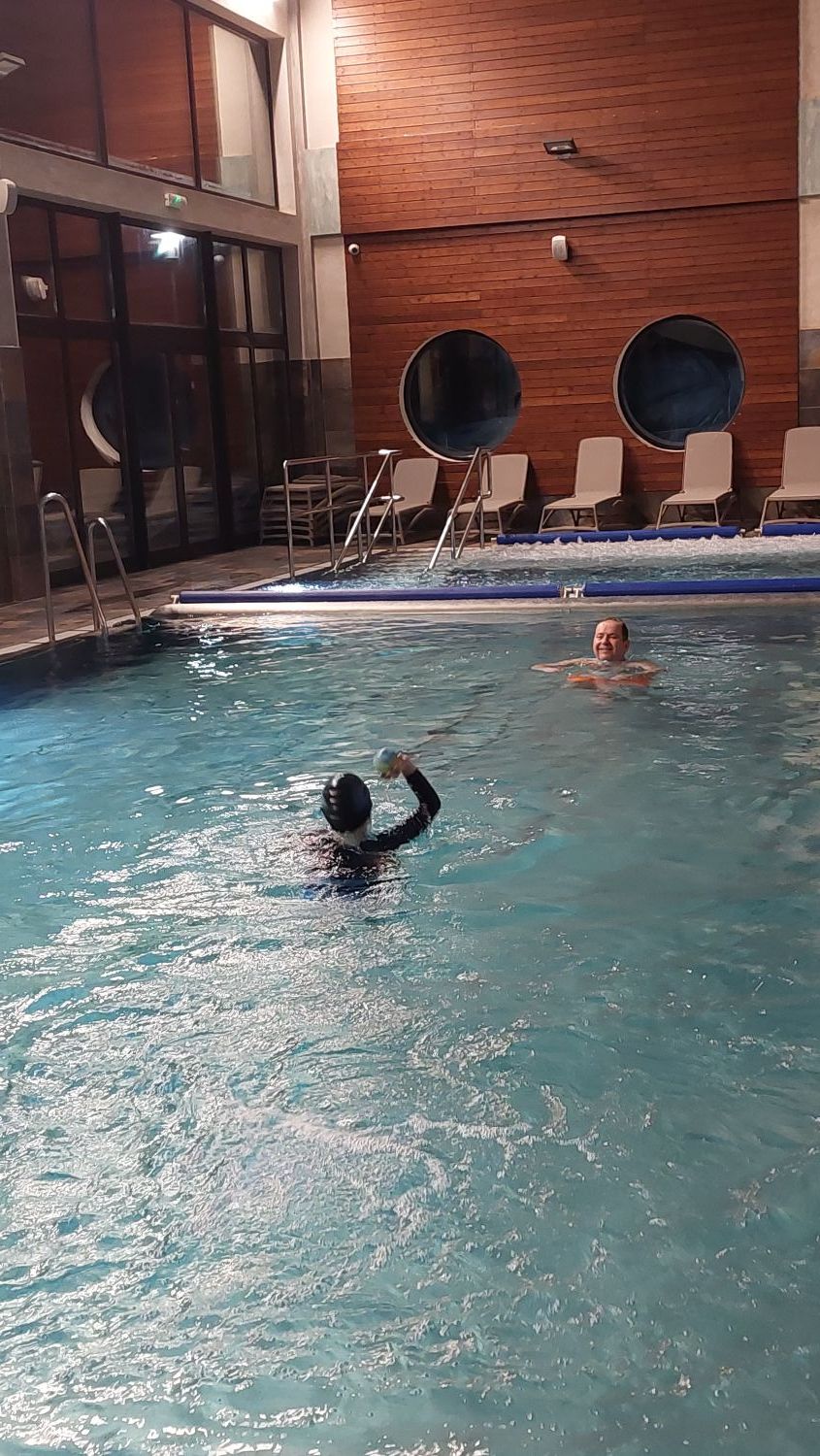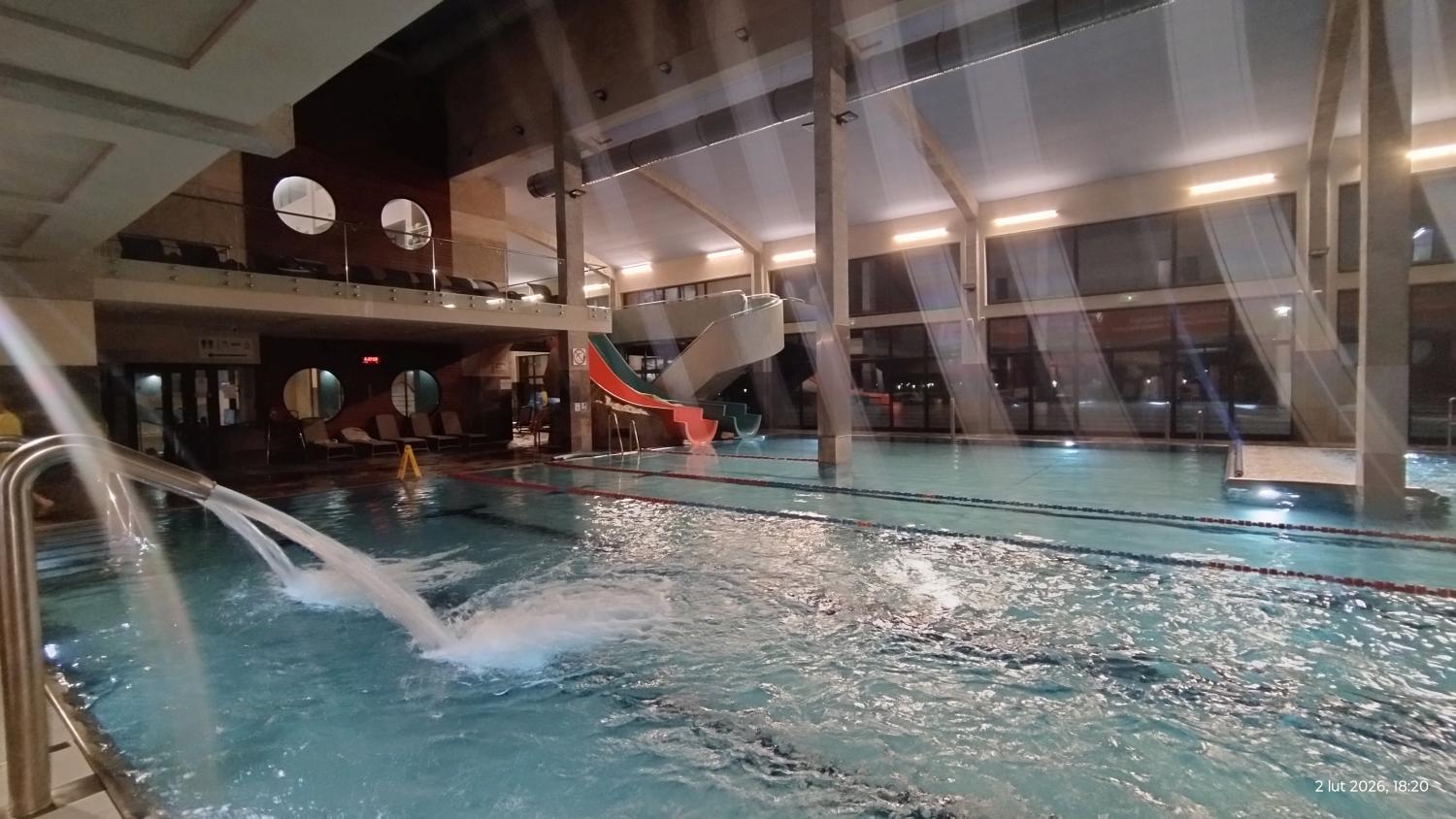 Już byliśmy w hotelu "Malinowy Raj" w Solcu, ale dla małego odpoczynku wróciliśmy tu na dwa dni tym razem z wnukiem. Ładnie tu jest, można korzystać z basenów a najlepsze są baseny solankowo-siarkowe. Podobają się nam też sauny a jest ich trzy, sucha, aromatyzowana i mokra. Byłem też w jacuzzi na zewnątrz tylko włosy mi zamarzły. Sporo czasu spędziłem z wnukiem na ping-pongu, bilardzie i piłkarzykach. Na basenach ścigałem się z wnukiem kto pierwszy przepłynie basem, czasem wnuk oszukiwał odpychając się od filarów, chodź dziadek też czasem oszukiwał, płynąc normalnie zamiast na plecach. Jedzenie było OK, a mieliśmy śniadania i obiadokolacje, brakowało mi tylko zup.