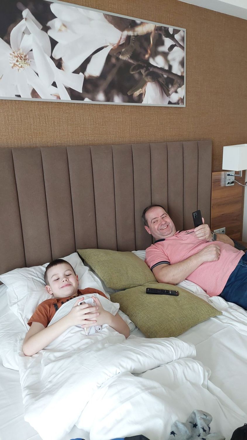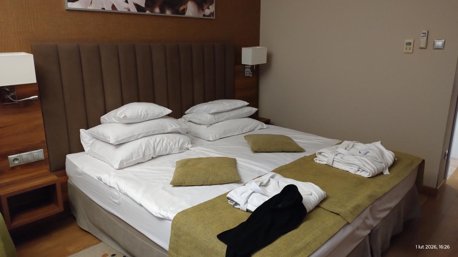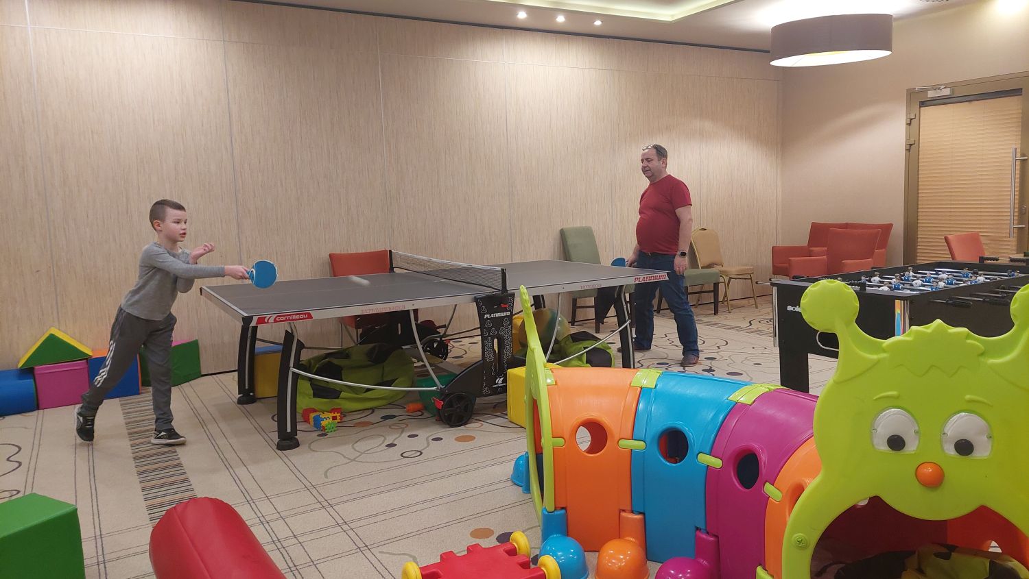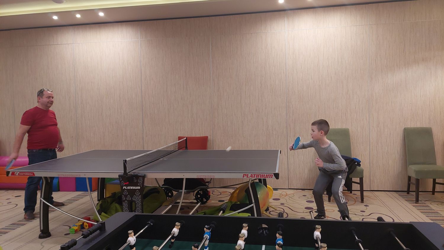 Już byliśmy w hotelu "Malinowy Raj" w Solcu, ale dla małego odpoczynku wróciliśmy tu na dwa dni tym razem z wnukiem. Ładnie tu jest, można korzystać z basenów a najlepsze są baseny solankowo-siarkowe. Podobają się nam też sauny a jest ich trzy, sucha, aromatyzowana i mokra. Byłem też w jacuzzi na zewnątrz tylko włosy mi zamarzły. Sporo czasu spędziłem z wnukiem na ping-pongu, bilardzie i piłkarzykach. Na basenach ścigałem się z wnukiem kto pierwszy przepłynie basem, czasem wnuk oszukiwał odpychając się od filarów, chodź dziadek też czasem oszukiwał, płynąc normalnie zamiast na plecach. Jedzenie było OK, a mieliśmy śniadania i obiadokolacje, brakowało mi tylko zup.