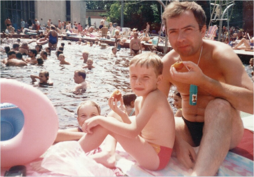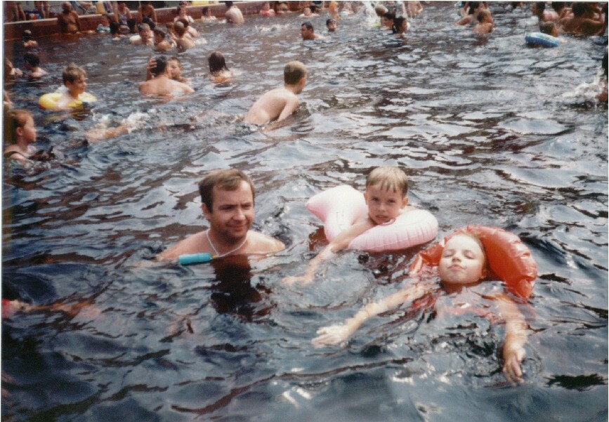 Wybraliśmy się sami. Nasz Fiat 126p rozkraczył się jeszcze w Polsce, ale okazało się że nowy przerywacz należało podregulować i pojechaliśmy dalej. Trochę pobłądziliśmy ale się udało. Na miejscu mieliśmy zarezerwowany całe piętro w domu. Nasz "maluch" znowu pokazał błąd, wskaźnik paliwa opał i pokazał pusty zbiornik co było dziwne bo nie było wycieku paliwa. Gdy wszyscy opalali się na basenie, ja kładąc się pod auto wyjąłem zbiornik i naprawiłem uszkodzony pływak wskaźnika, był dziurawy, a naprawiłem go rozgrzanym gwoździem. Na basenach było fajnie, ciepła woda i frajda dla dzieci, córka nauczyła się nurkować. To nurkowanie (moja wina że ją nauczyłem) za skutkowało, że w dniu wyjazdu okazało się że córka ma gorączkę i w takim stanie musiał znosić trudy podróży do domu.