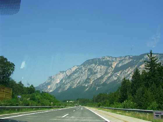 Przez Austrię - Granicę pomiędzy Słowacją a Austrią przekroczyliśmy w miejscowości Kittsee. I omijając Wiedeń drogą nr 50 koło jeziora Neusiedler See dojechaliśmy do autostrady A2 w Eisenstadt. W Austrii też należy posiadać winietę na szybie samochodu. Jazda autostaradą była dziecinnie prosta można było jechać 130 km/h. Przed granicą Włoch w Arnoldstein zjechaliśmy z autostrady i zjedliśmy obiad oraz napełniliśmy zbiornik paliwa za 0,827 Euro/litr.