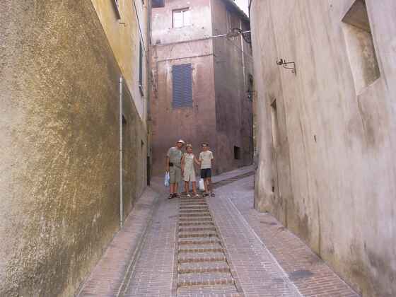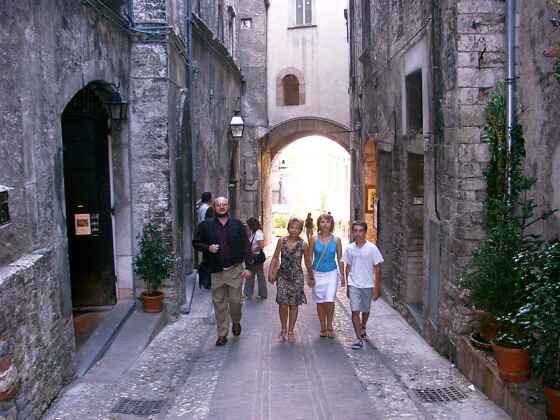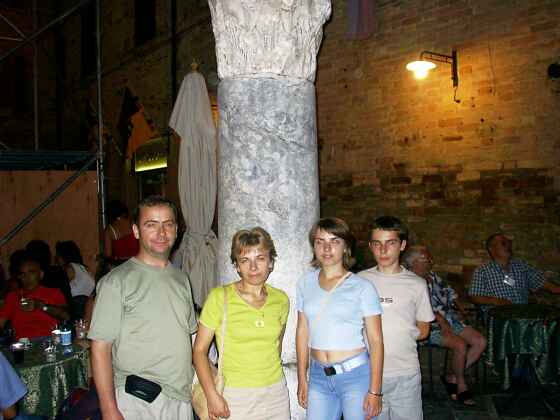 Spello - Jest to małe miasteczko które szczyci się tym, że wszyscy sie tu bawią śpiewają wystawiają sztuki, piją, jedzą i jest bardzo fajnie, a dzieje się to wieczorami i nocami. My byliśmy tu około północy. Jedno ze zdjęć przedstawia nas prze kolumną z 5 wieku przed Chrystusem.