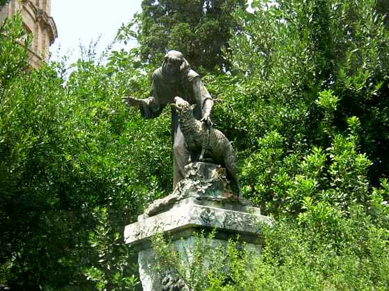 Asyż Porcjunkula - Porcjunkula czyli "cząsteczka" - tak św. Franciszek nazwał mały domek postawiony przez niego. Był on domem modlitwy i rozwarzań pierwszych zakonników - Franciszkanów. Zdjęcia przedstawiają - św. Franciszek rozmawiający ze zwierzętami, zagon róż bez kolców (straciły jak Franciszek wskoczył w nie dla umartwienia ciała), gołąbki - turkawki - gnieżdzące się w koszyczku trzymanym przez św. Franciszka (uratował on gołąbki niesione na targ).