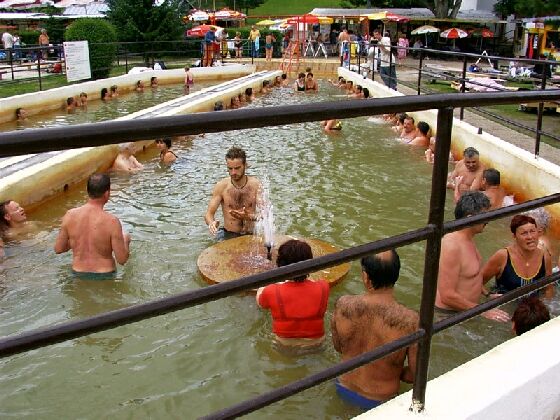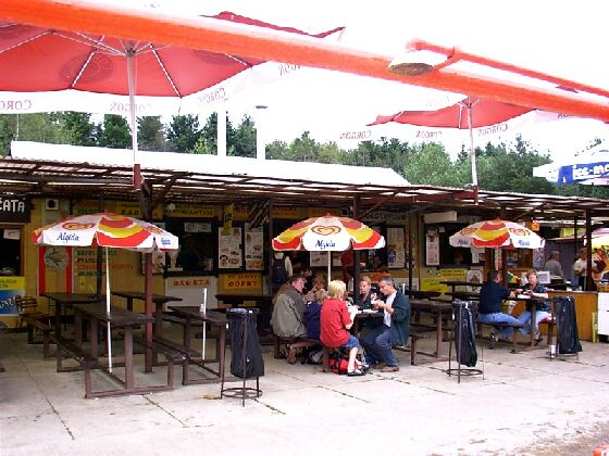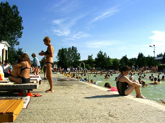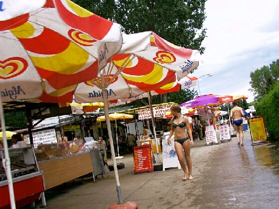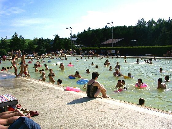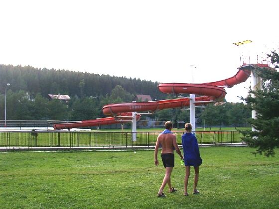 Na basenach. Kompleks basenów czynny od 8:00 do 18:00 cena biletu dla osoby dorosłej - 90 koron.