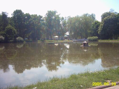 W centrum parku znajduje się jeziorko z wyspą na środku, oraz fontanną.