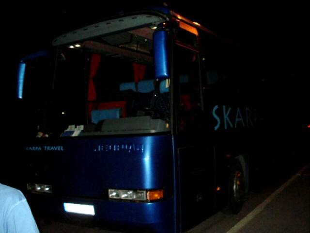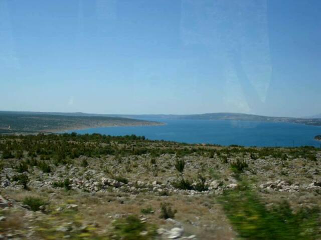 Wyjazd mieliśmy 26.07.2007 z Dworca Autobusowego w Krakowie. Biuro Podróży "Skarpa" podstawiła autokary o godzinie 8:30, a o 9:00 siedząc w wygodnych fotelach rozpoczęliśmy naszą podróż. Noc spędzona w autokarze nie należy do przyjemnych ale mając na myśli pobyt w ciepłym kraju jakim jest Chorwacja idzie wytrzymać. Rano kierując się ciągle na stolicę Chorwacką Zadar przekroczyliśmy granicę i pędząc autostradą z szybkością 100 km/h piękną obwodnicą minęliśmy Zadar. W miejscowości Karlowacz zjechaliśmy z autostrady kierując się drogą która prowadzi obok Plitwickich Jezior. Zjazd z autostrady był podyktowany korkami samochodów jakie tworzyły się w szczycie wakacyjnym. Niestety jadąc nie autostradą byliśmy narażeni na piękne widoki jak i strach przed serpentynami i przepaściami. Oczywiście - jak w Polsce rozgłaszały media - napotkaliśmy palące się trawy i niskie drzewa.
