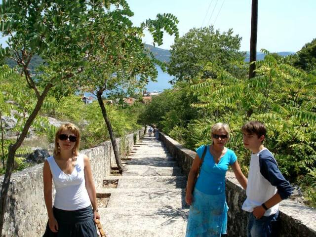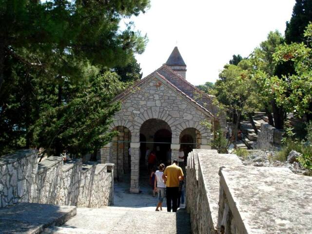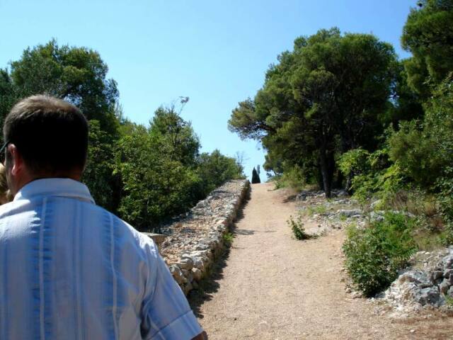 W niedzielę byliśmy na Mszy św. w kościele zwanym "Gospe od Karavaja". Jest on na wysokiej górze a droga która do niego prowadzi jest bardzo stroma i wzdłuż niej są stacje Drogi Krzyżowej. Na mszy zrozumieliśmy prawie wszystko co ksiądz mówił. Chorwaci wykonywali śpiewy bez organów w formie dwugłosowych śpiewów chóralnych. Prawdopodobnie obraz główny w ołtarzu był namalowany przez artystę o nazwisku Karavaj. Wracając ze Mszy św. poszliśmy inną drogą. Schody którymi schodziliśmy ciągły się aż do samego morza a było ich 340.