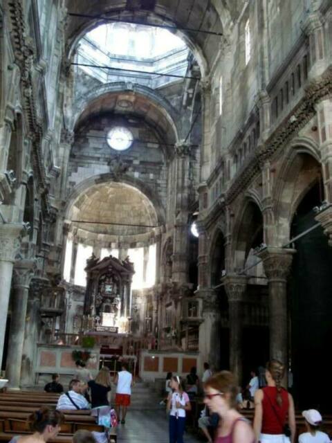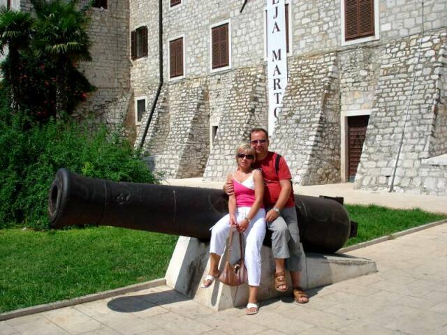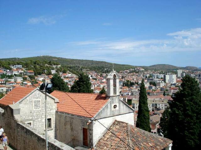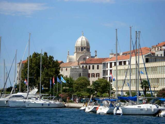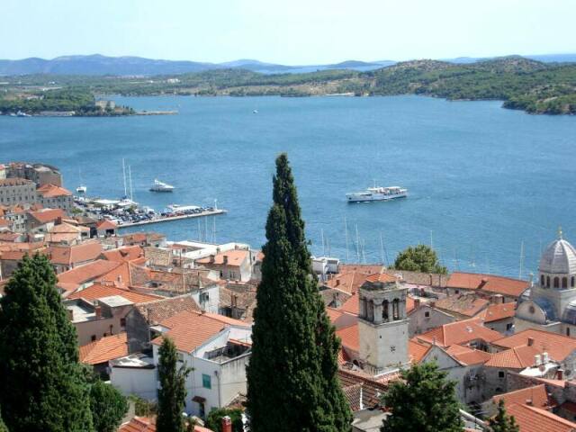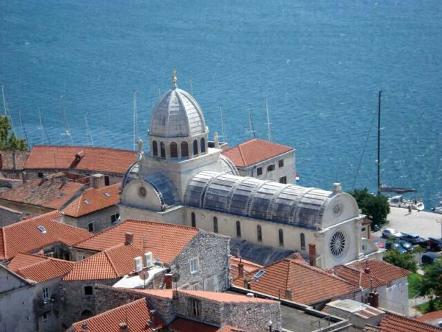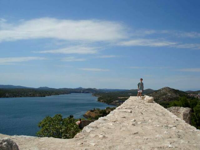 W jeden dzień wybraliśmy się do miasta Szibenik położonym 80 km od Tisno. Pojechaliśmy tam autobusem miejskim (troszeczkę był spóźniony tylko 40 min.). Jechaliśmy przez most długości 300 metrów. Katedra Sw. Jakuba jest bardzo stara świątynią, zbudowaną z kamienia co daje w środku poczucie spokoju i cichości. Po spędzeniu kilku chwil na modlitwie i oglądaniu świątyni, zapaliliśmy świecę i wyszliśmy kierując się na mury św. Anny. Miasto Szibenik położone nad brzegiem morza rozbudowywało się na stoku góry. Uliczki starego miasta są bardzo wąskie bardzo często dostosowane tylko dla pieszych gdyż posiadają schody. Idąc w górę mieliśmy wrażenie, że idziemy jakimiś korytarzami. Mury a raczej pozostałości po murach leżą w najwyższym punkcie miasta i widoki jakie tam zobaczyliśmy zapierają dech w piersiach. Trudno to opisach to trzeba zobaczyć. Spacer ponad samym wybrzeżem i obejrzenie tak wielu jachtów i innych pływających łódek sprawiło nam wielką frajdę. Po uzupełnieniu energii (byliśmy na pizzy) i kupieniu kilku pamiątek wróciliśmy do Tisno starym ale już nie spóźnionym autobusem.