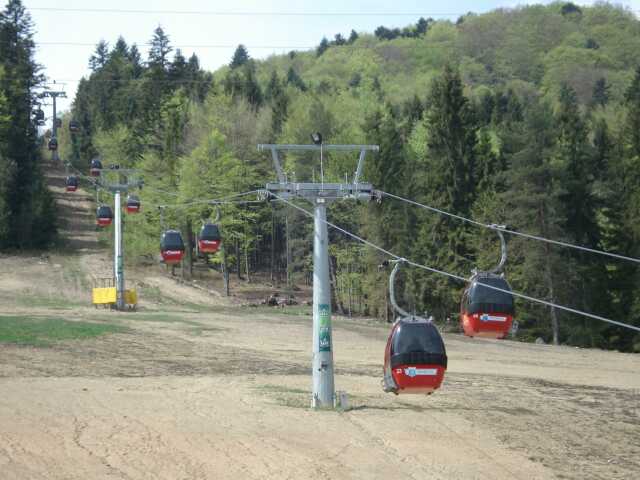 Na samym szczycie stoi kilka budynków w których można coś zjeść lub napić się kawy. Co dla niektórych wielką frajdą jest zejście na dół na własnych nogach, ja z żoną nie skusiliśmy się na taką frajdę i zjechaliśmy spokojnie na dół gondolą.