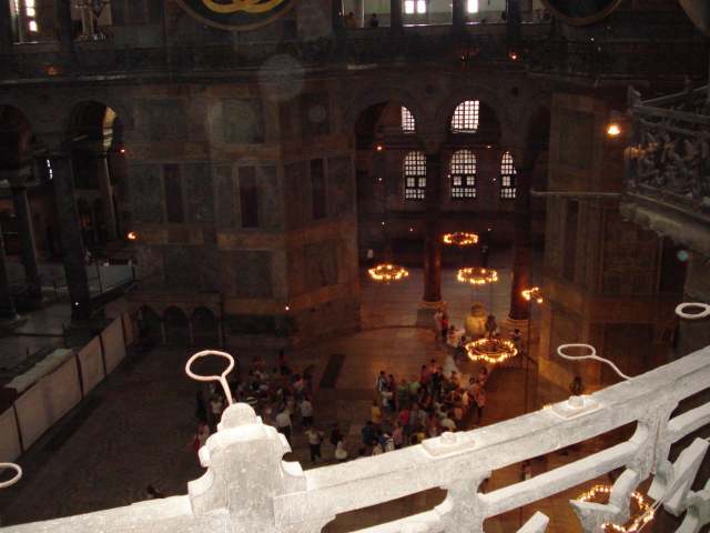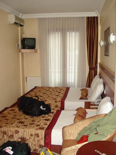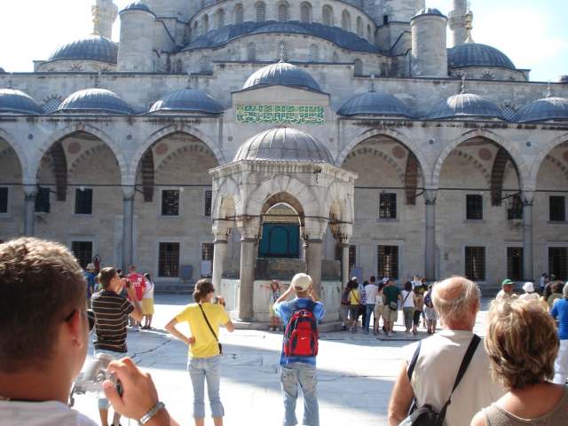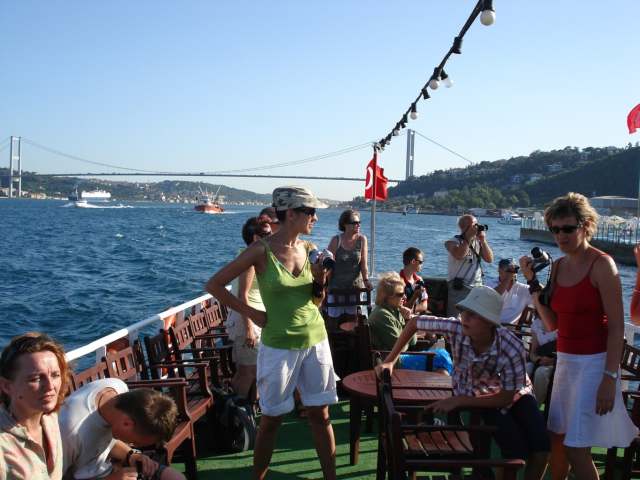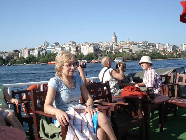 Zwiedzanie Istanbułu rozpoczyęliśmy od Hipodoromu gdzie w dawnych czasach odbywały się wyścigi rydwanów, stoją tam obelisk bardzo dobrzez zachowany a drugi zniszczony bo był obłożony złotem które znikło. Następnie Meczet - ma 6 minaretów - w środku cały jest wyłożony kafelkami a sklepienia złocone w fantazyjne wzory. Aya Sofia zbudowana przez chrześcian, miała ona pokazać piękno nieba na ziemi. Bardzo zniszczony i zaadaptowany na meczet. W tej chwili jest remontowany. Cysterna na wodę pod ziemią - 325 kolumn podpiera sklepienie, w wodzie pływają karpie (ciekawe kto je karmi), była ona zabezpieczeniem w wodę dla pałacu sułtana. Top capii czyli Pałac Sułtański - kilka budowali począwszy od kuchni przez stajnie, salony a kończywszy na haremie. Na mnie osobiście nie zrobił wrażenia. Po południu wybraliśmy się na statek. Ciśnina Bosfor po której pływaliśmy zrobiła na mnie wrażenie, mosty, domy na brzegu, statki pływające po cieśninie to wszystko tworzy niepowtarzalną atmosferę.