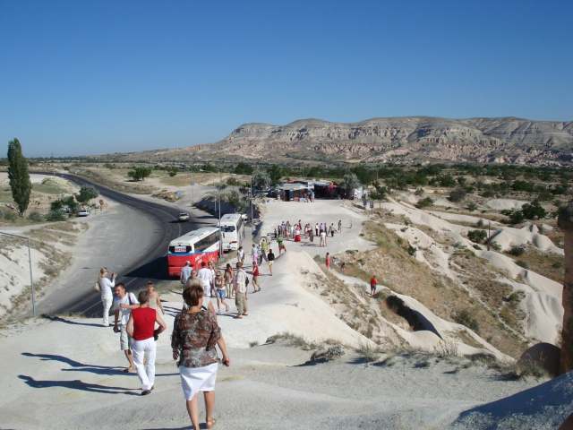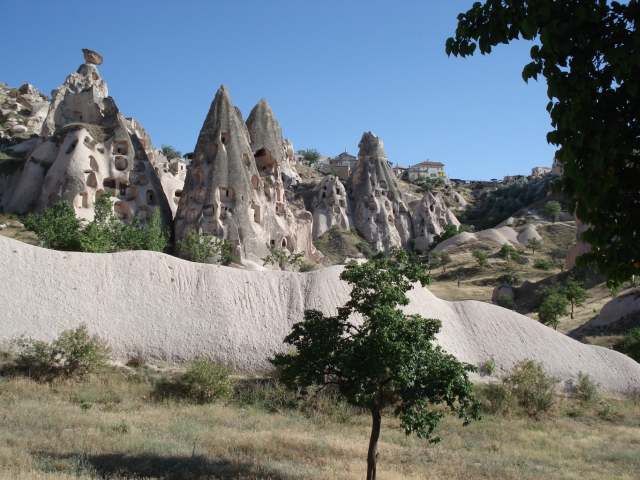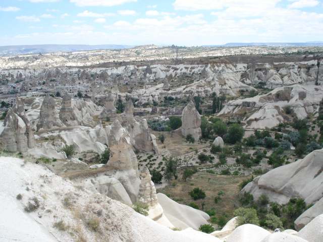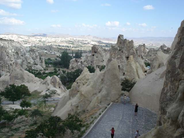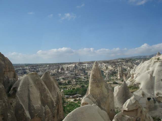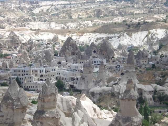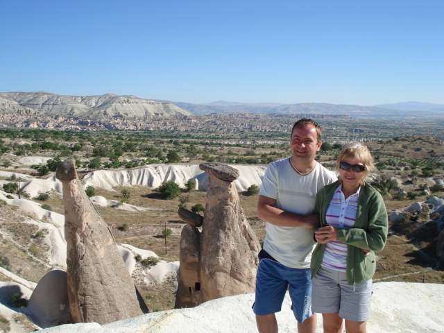 Kapadocja to kraina o krajobrazie księżycowym. Ludzie już na początku chrześcijaństwa wykuwali tu mieszkania w skale (tuf) gdzie mieli schronienie. Tuf to nagromadzony popiół z wulkanów sięgający 200 m grubości. Kapadocja to naprawdę przepiękne miejsce. Zwiedziliśmy tu też fabrykę porcelany gdzie wytwarzają przepiękne talerze i dzbany. Byliśmy tu też w mieszkamiu w którym jeszcze w 1984 roku mieszkali ludzie, teraz z powodu wysokuch podatków wyprowadzili się do Ankary. Byliśmy też w podziemnym mieście gdzie żyło około 3000 ludzi.