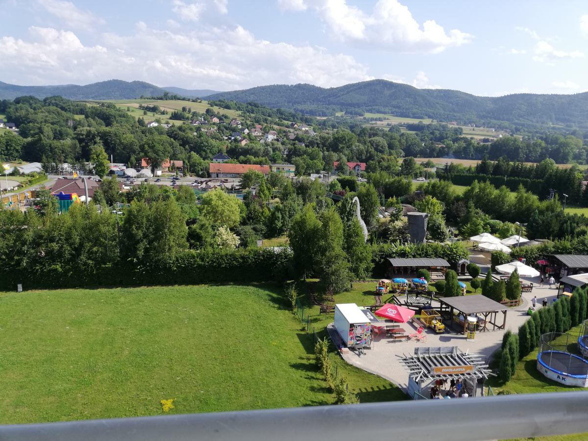 Na górę planowaliśmy wyjechać kolejką linową ale nasi najmłodsi uczestnicy powiedzieli 'nie' bo strach, więc udaliśmy się tam samochodem po dość stromej i wąskiej drodze ale warto było.