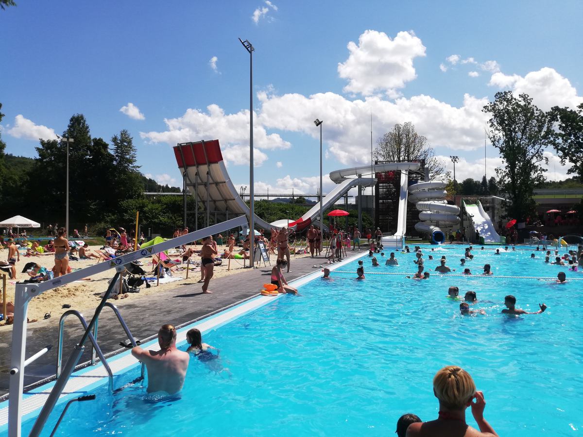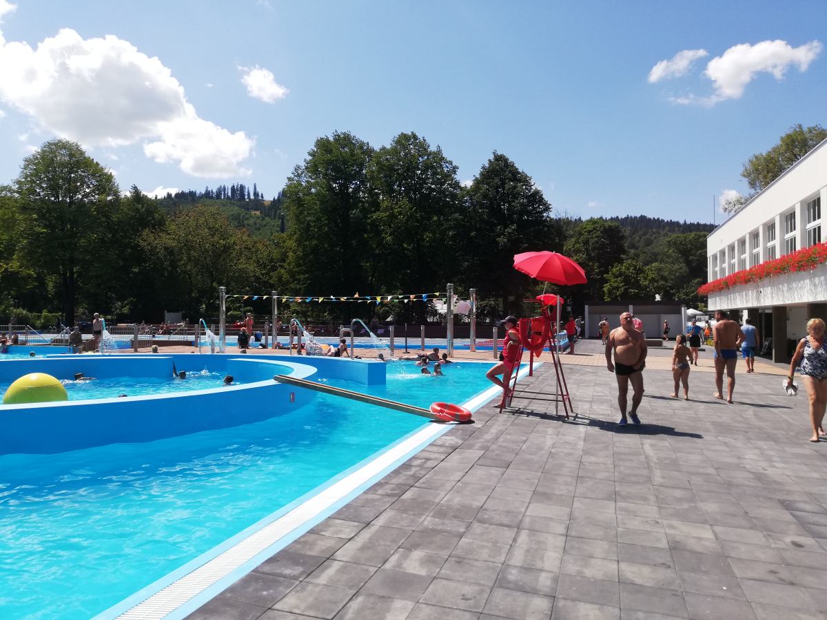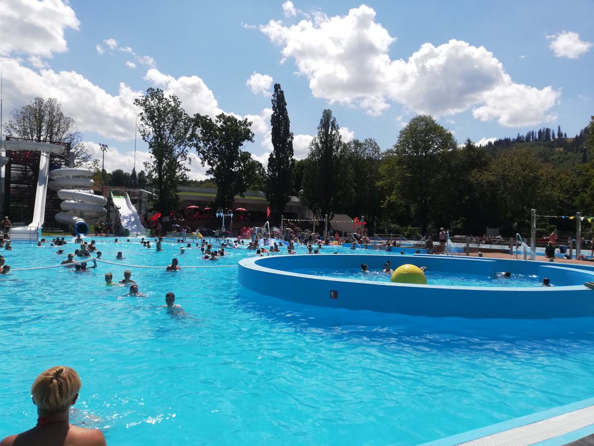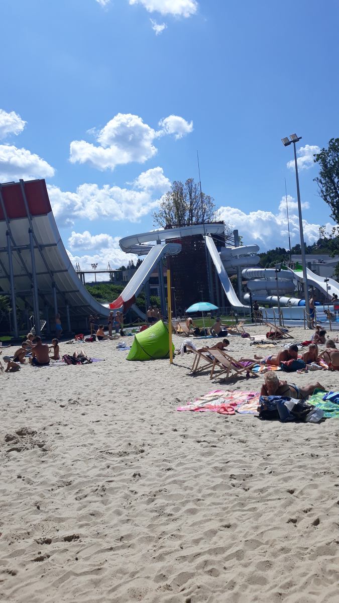 Piękna i słoneczna pogoda wręcz zmusiła nas do udania się na basen. Wejście kosztowało 49 zł od osoby za cały dzień. Zdjęcia poniżej pokazują, że jest on ładny, zadbany i można zrelaksować się tu dość mocno.