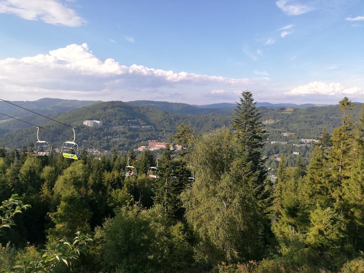 Miasto położone w dolinie między dwoma wzniesieniami z rzeczką przez nie płynącą - jak ktoś się nie domyśla dopowiem że ta rzeczka to nasza Wisła. Zamieszkaliśmy w Villa Miłosna w apartamencie Kontrabas. Mieliśmy do dyspozycji dwie sypialnie, kuchnie z salonem i łazienkę. Za budynkiem był plac zabaw dla dzieci. W cenie mieliśmy śniadania, które były dość dobre, brakował nam tylko ekspresu do kawy, kawa była do zrobienia w sposób czajnikowy.