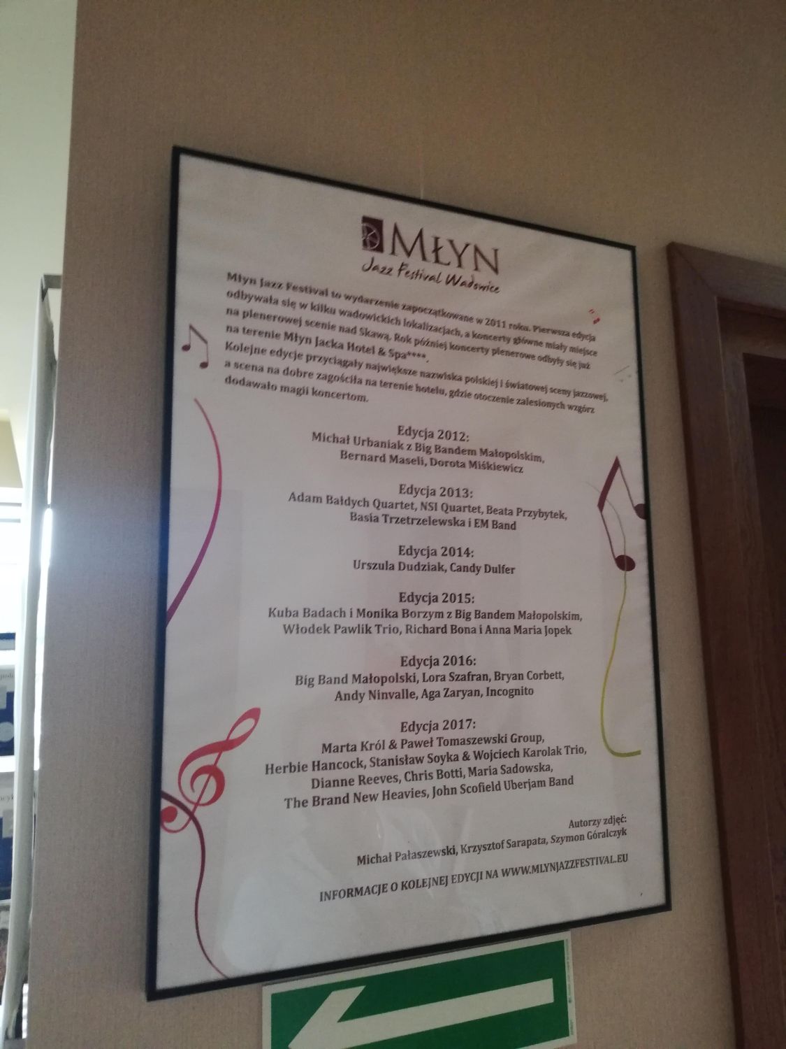Hotel - Młyn Jacka (strona hotelu) w miejscowości Jaroszewice parę kilometrów za Wadowicami. Zbudowany a raczej wyremontowany z starego młyna który swą świetność dawno miał za sobą i zamiast dalej popadać w ruinę został wyremontowany i zmieniony na hotel. Cztery gwiazdki mówią że jest on bardzo nowoczesny i wyposażony we wszystko co potrzebne. Dostaliśmy pokój na drugim piętrze z numerem 228 w drugim budynku.