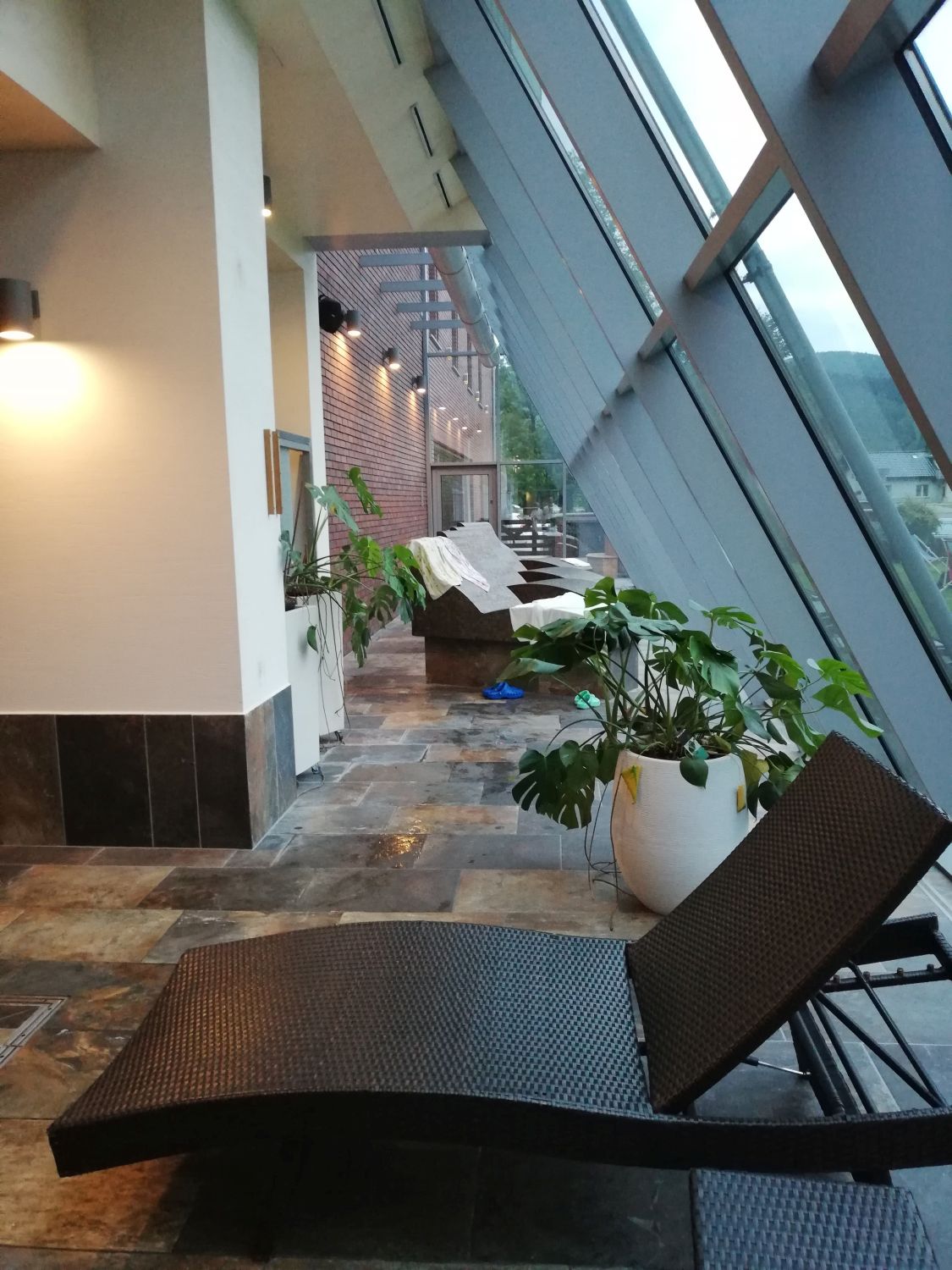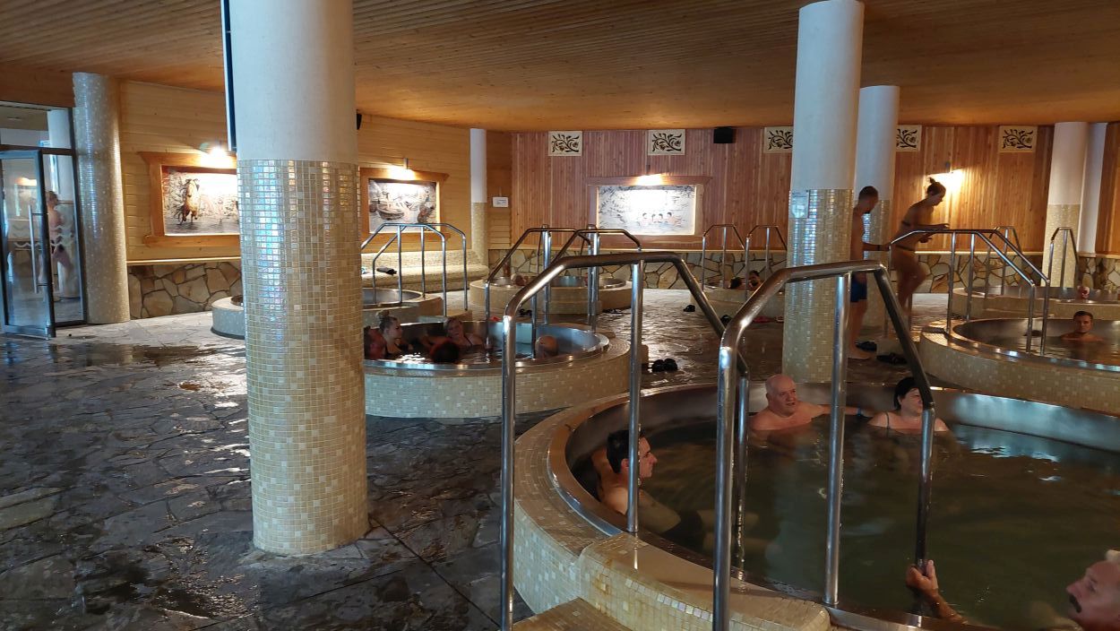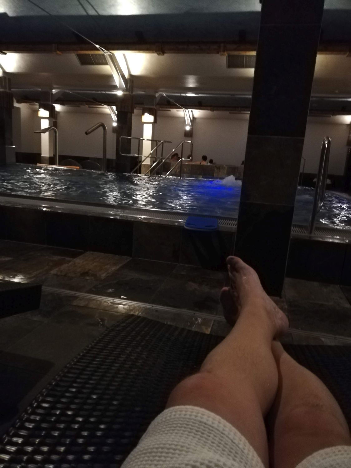 Basen dostępny przez prawie cały dzień, posiadał duży basen z natryskami i ogromne jacuzzi, sauny czynne od 14:00, sucha i mokra, były też podgrzewane leżanki.