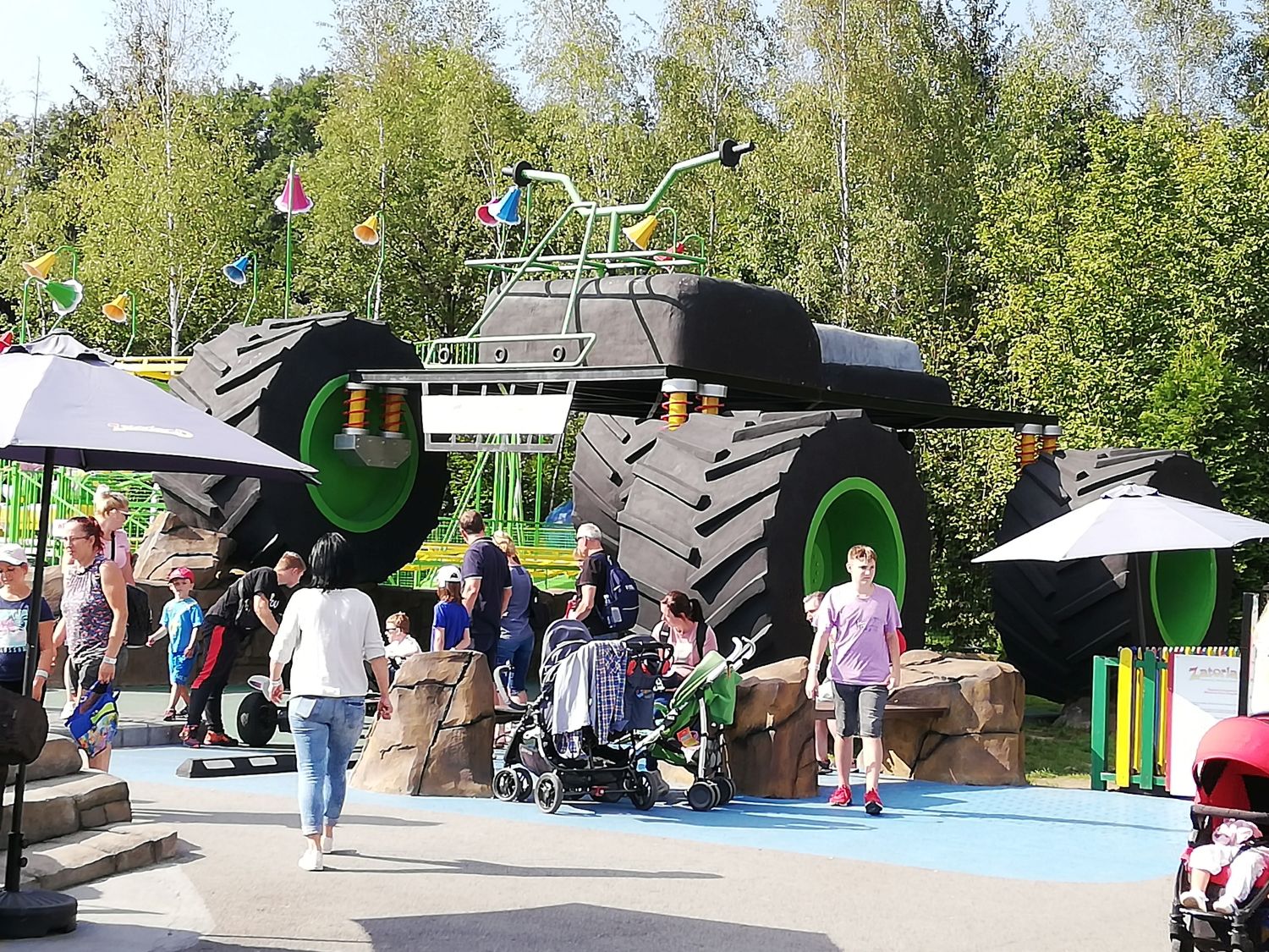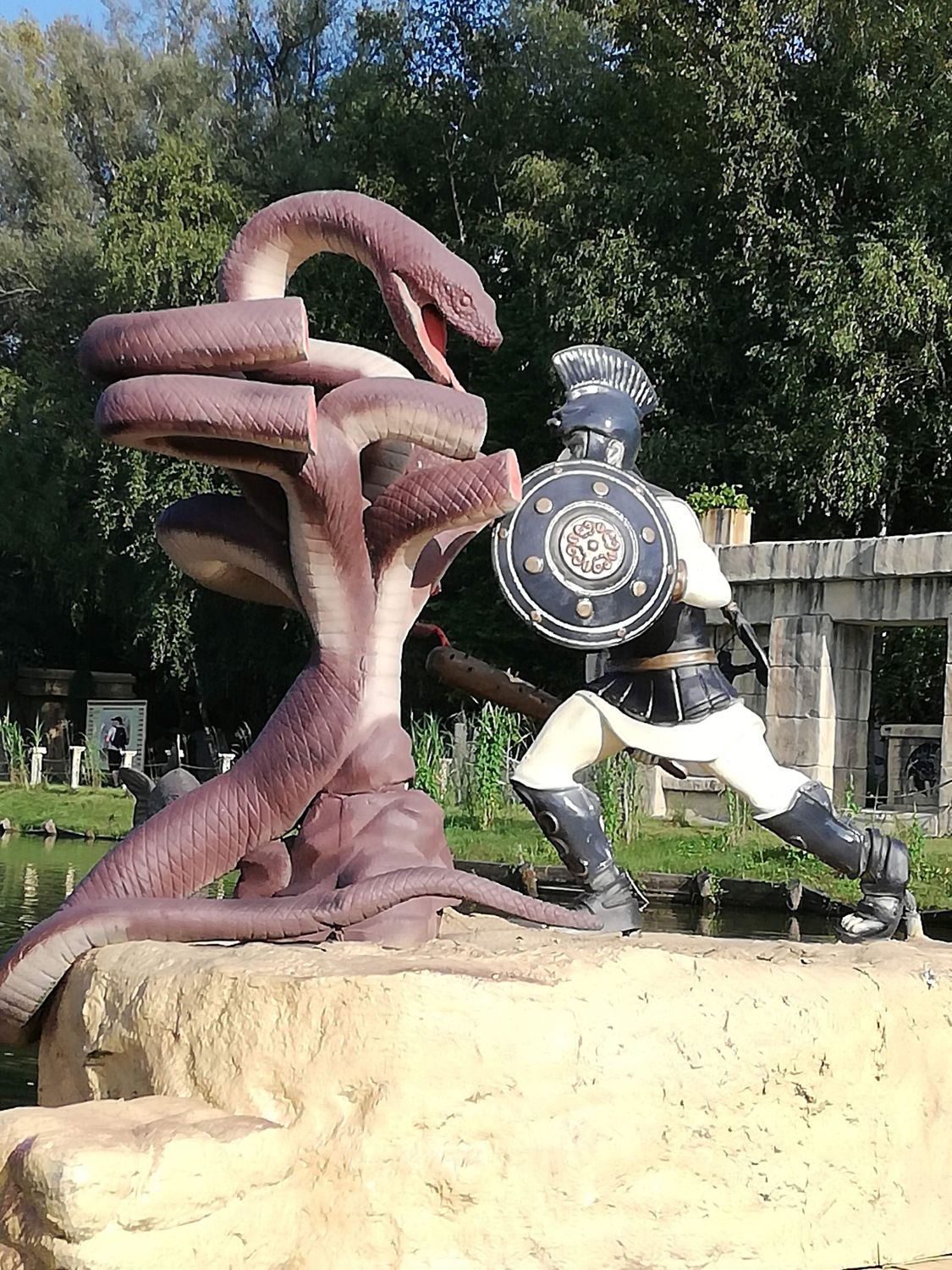 Do Zatorlandu wybraliśmy się z samego rana (uznaliśmy że Energylandaia jest dla nas za duża). Zaliczyliśmy prawie wszystkie atrakcje, były samochodziki, łódź piracka, kolejka, wahadło. Przeszliśmy przez parka dinozaurów i weszliśmy do parku Mitologii Greckiej gdzie popływaliśmy tramwajem wodnym.