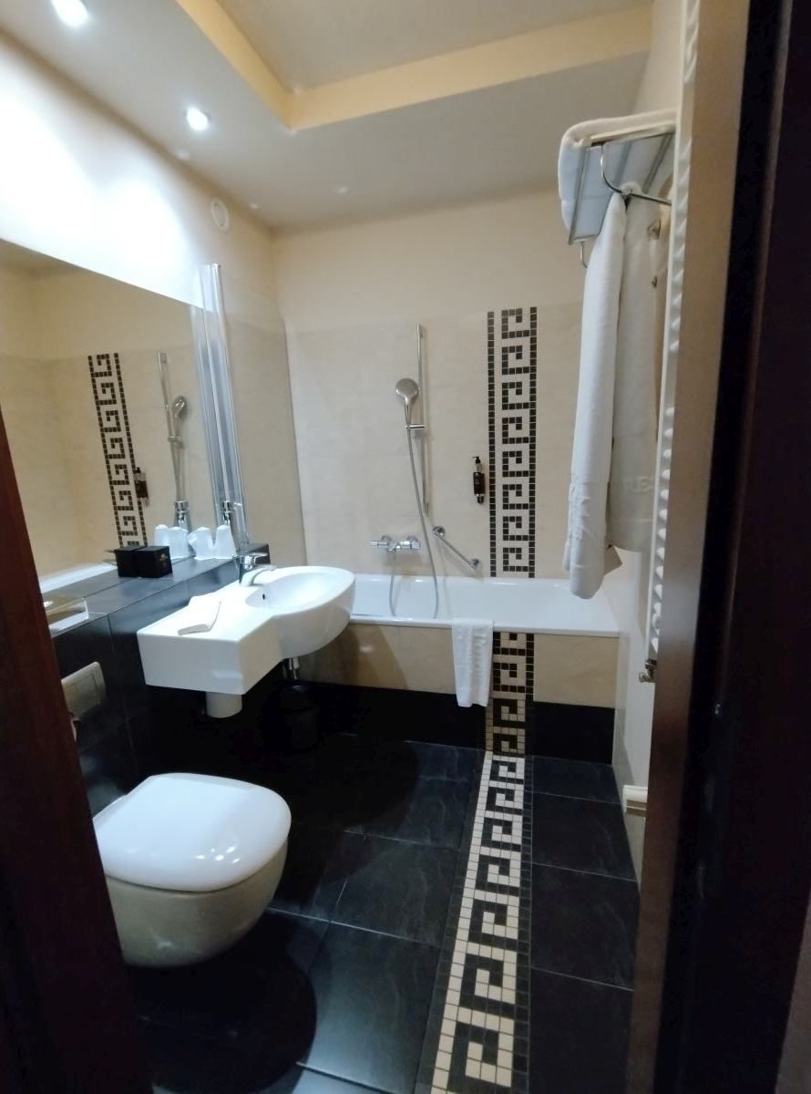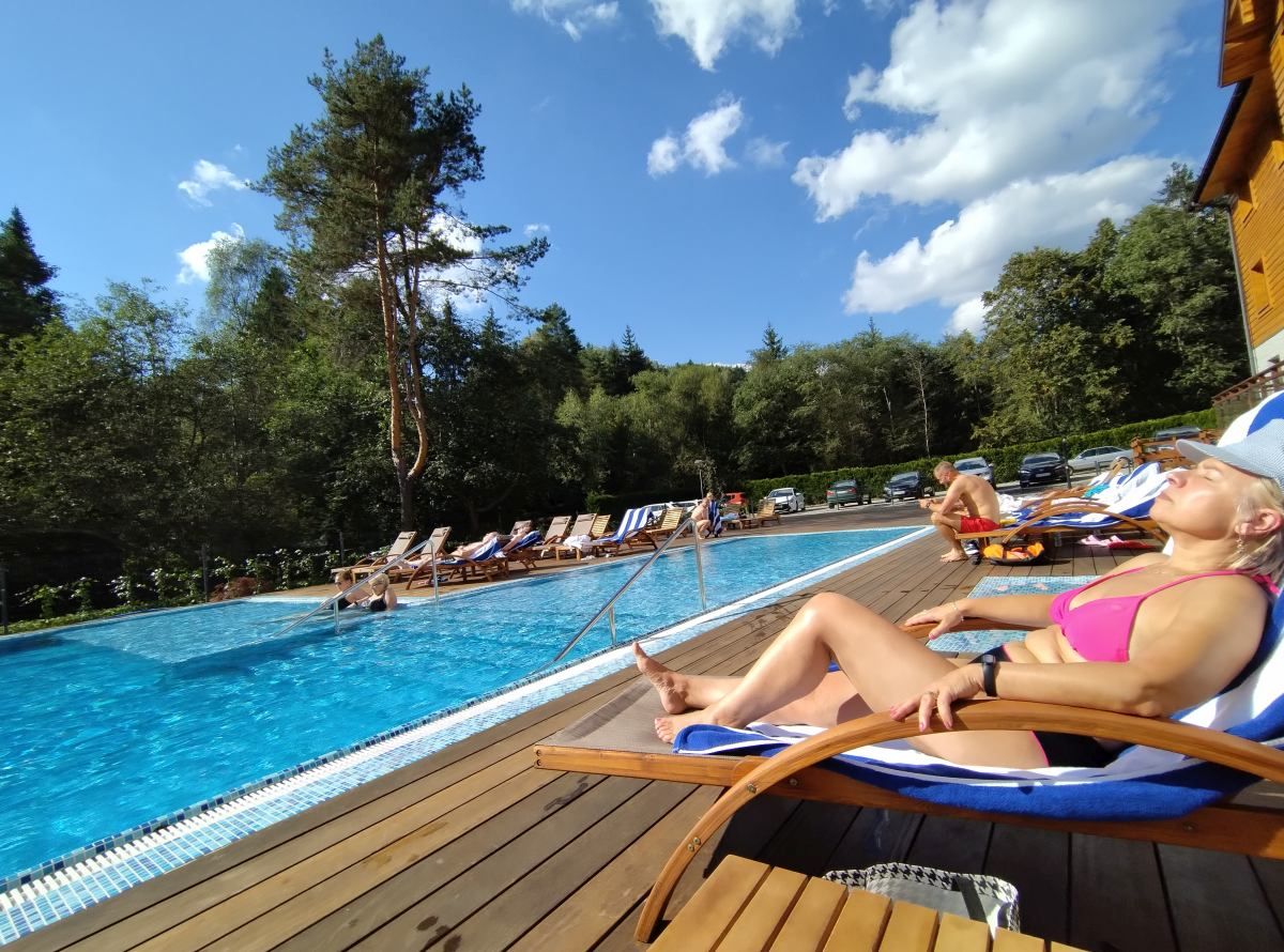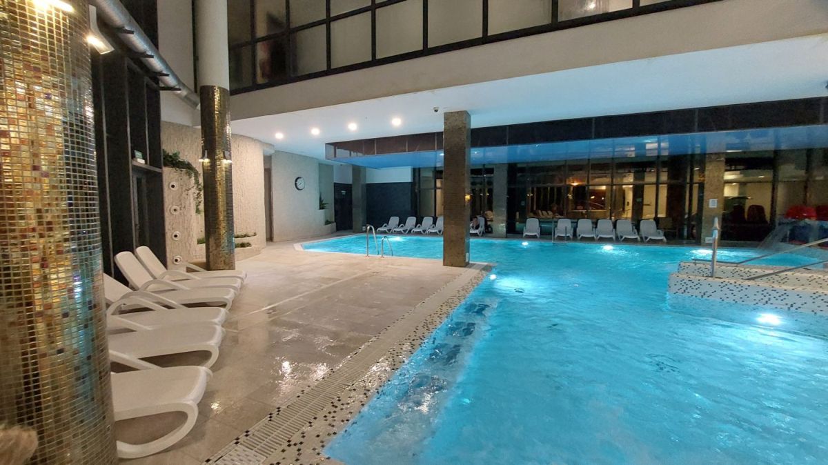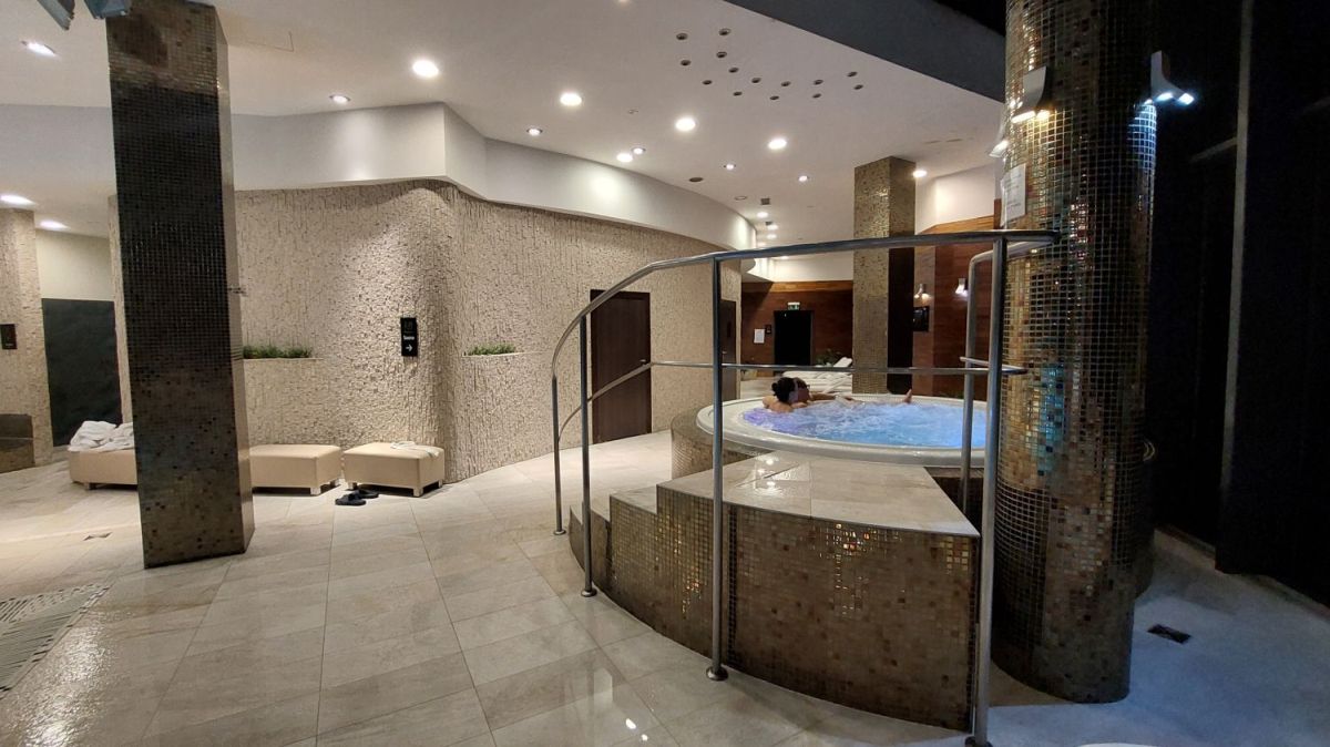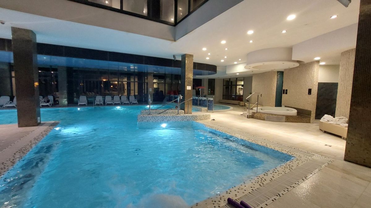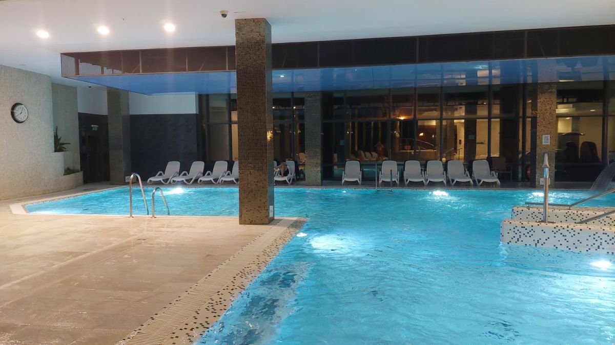 Basen w hotelu jest dość płytki od 95 do 120 cm, ale woda w nim ciepła, atrakcje wodne automatycznie się zmieniają, bicze były bardzo ostre, wanna z solanką, jacuzzi oraz sauny sucha i mokra. Na zewnątrz też był basen z podgrzewaną wodą i dość głęboki 150 cm. Dla dzieci był taki na 30 cm a dla maluszków 5 cm. Na leżakach z ładnymi ręcznikami smażyliśmy się na słońcu bo mimo końca września słoneczko ładnie grzało.