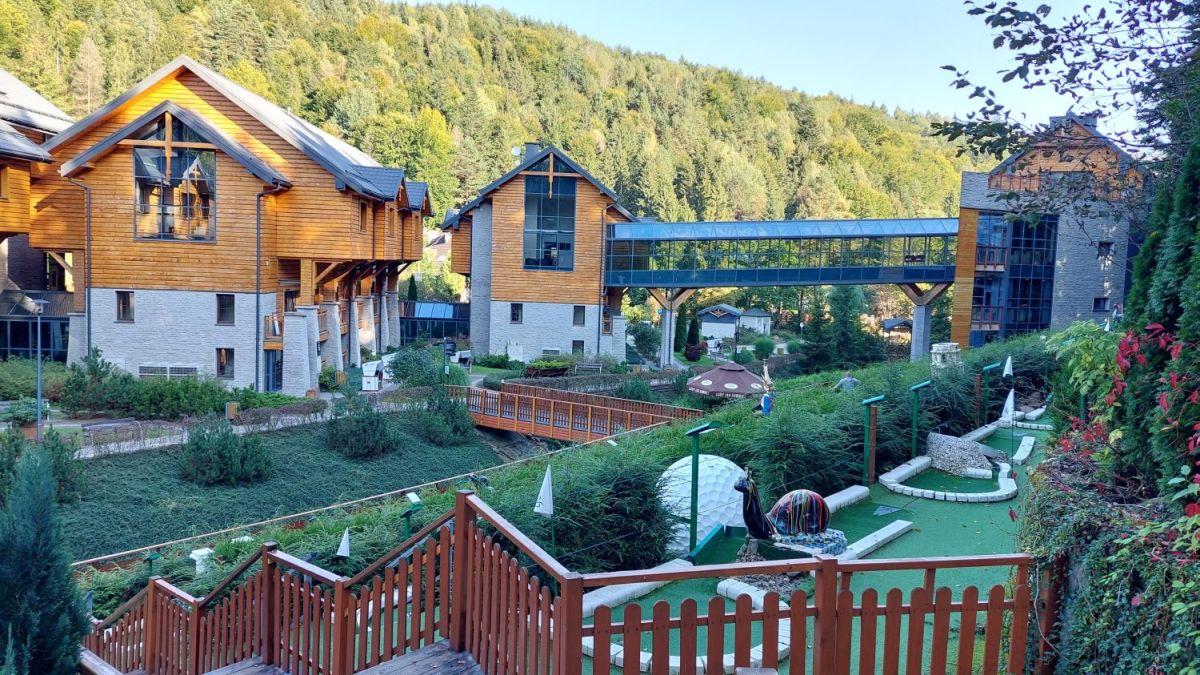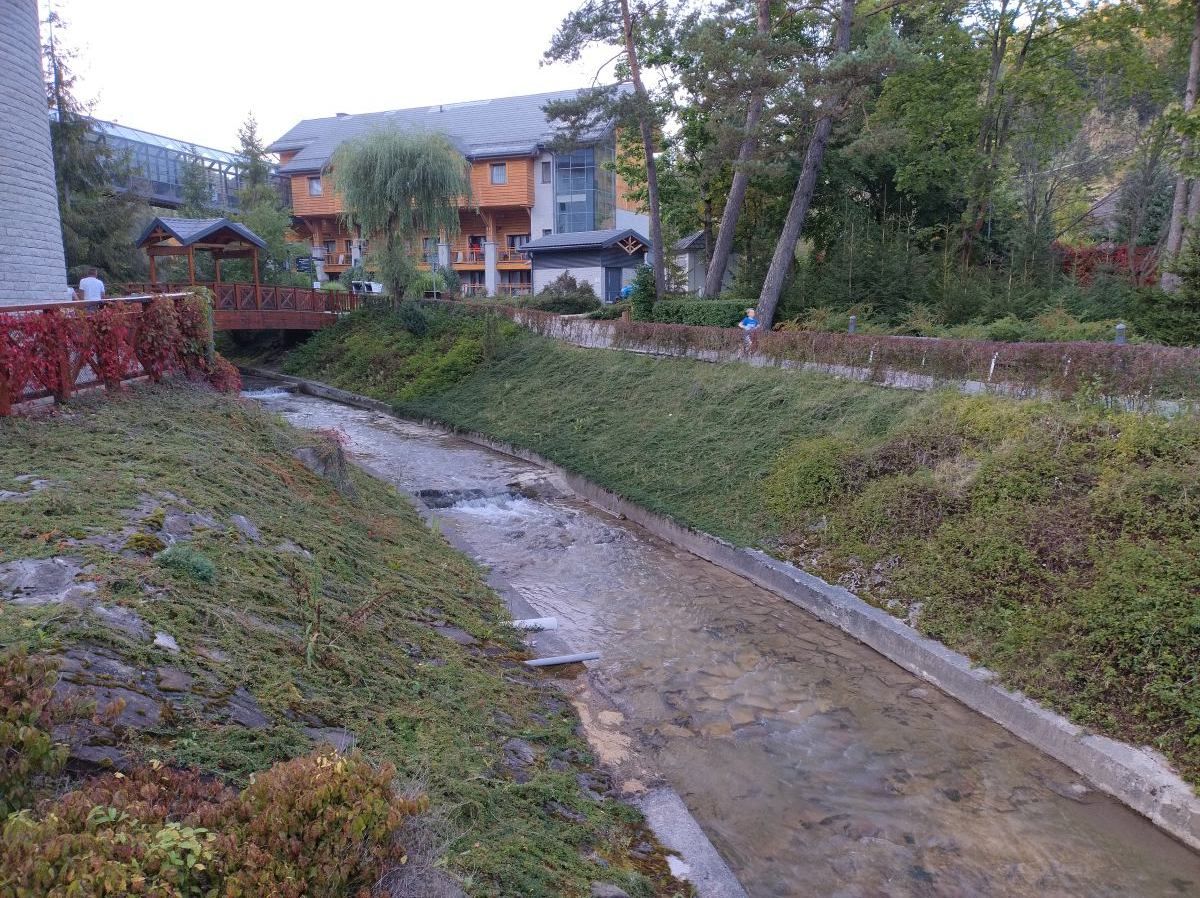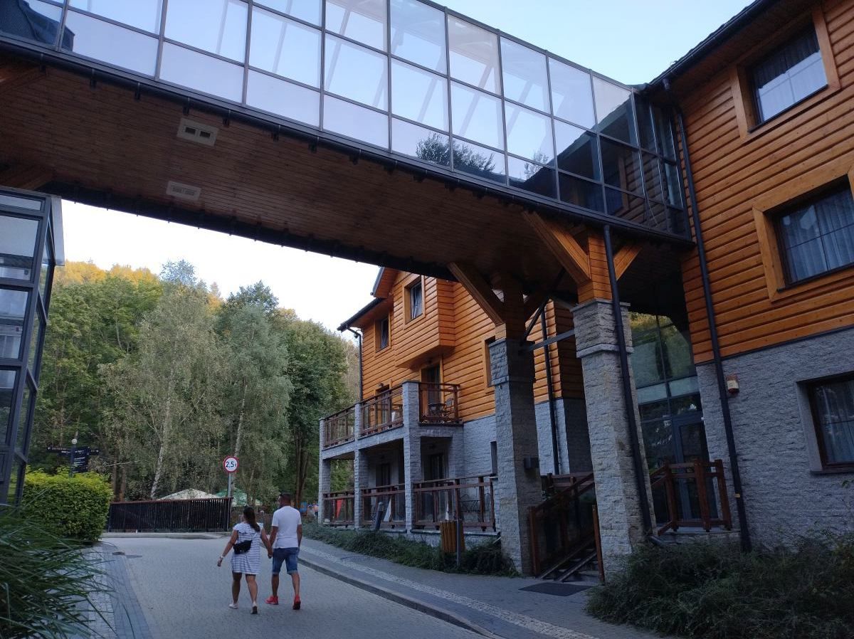 W hotelu "Czarny Potok" położony prawie pod Jaworzyną. Przecina go rzeczka która nadaje urok temu miejscu. Hotel składa się z kilkunastu budynków połączonych między sobą przejściami - łącznikami. My zamieszkaliśmy w 4 budynku pod nr 430. W następnym budynku był basen i całe SPA wraz z kręglami i innymi zabawami. Idąc na śniadanie musieliśmy otworzyć i zamknąć 10 drzwi ale się opłaciło bo śniadania były wypaśne.