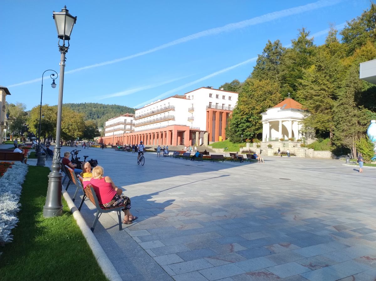 Krynica mocno się zmieniała od naszego ostatniego pobytu w tym mieście. Zadbane, czyste i odświeżone elewacje budynków ładnie nastrajały człowieka. W budynku Małopolska grałem na zielonym fortepianie Wodeckiego "Zacznij od Bacha", o tej dziewczynie z warkoczami oraz Pamięć z misicalu Koty.