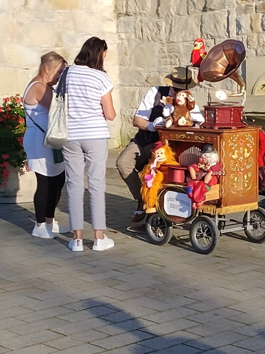 Muszyna bardzo nam się podobała, bardzo urokliwe miejsce, Zwiedziliśmy Ogrody Biblijne i Ogrody sensoryczne do zamku się nie wdrapywaliśmy się. W kawiarni wypiliśmy kawę i tam widziałem bardzo dziwaczny fortepian ale był bardzo rozstrojony choć technicznie sprawny.