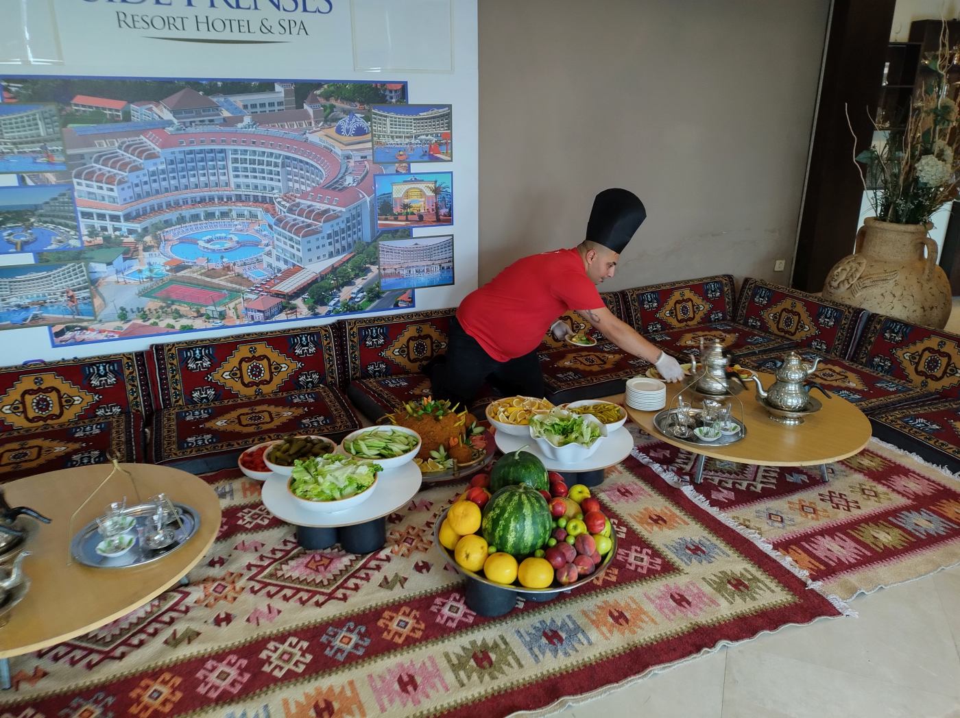 Podróż rozpoczęliśmy o 14:00, samochodem pojechaliśmy do Rzeszowa, auto zostało na parkingu Park4You (polecam). Samolotem tureckim o godz. 18:45 wylecieliśmy i po znośnym 2,5 godzinnym locie byliśmy w Antali. Bagaż i odprawy celno-paszportowe były OK. Rezydent biura OREX skierował do busa i około 1 w nocy jedliśmy kolację w hotelu SIDE PRENSES Resort Hotel & SPA