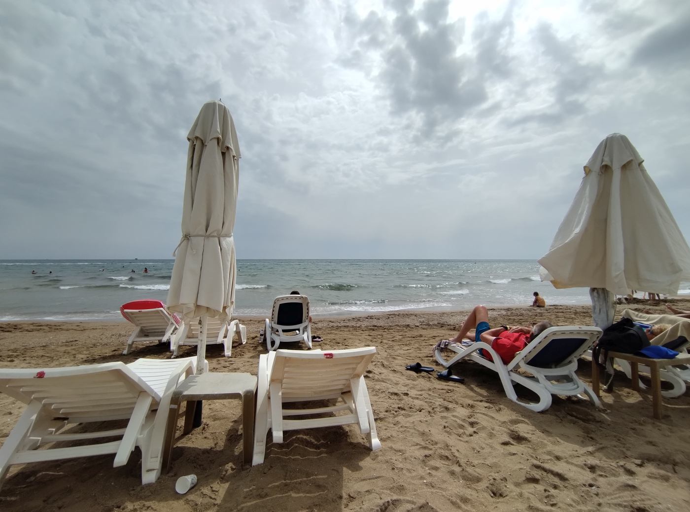 Nad morze chodziliśmy większości popołudniami. Woda w morzu była ciepła choć czasami brudnawa. Brak wiatru potęgował opalanie. Na plaży był oczywiście bar z napojami i lunchem.