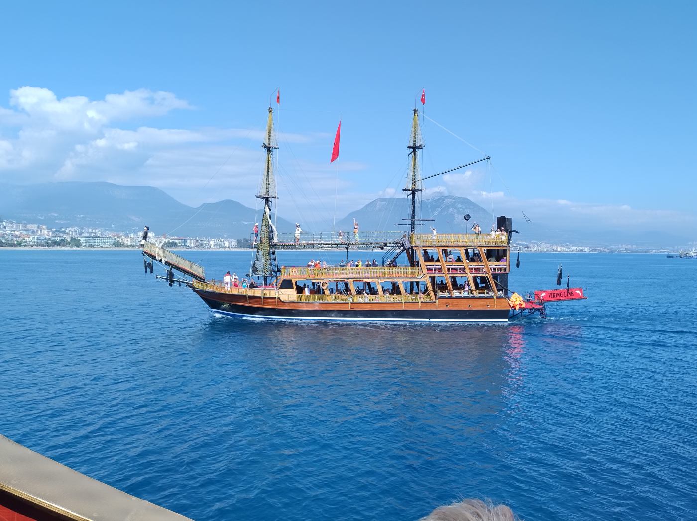 We wtorek pojechaliśmy z wycieczką za 55 Euro od osoby na zwiedzanie Antali. Oczywiście musieliśmy zaliczyć dwa sklepy  ze złotem i ciuchami. Piękna panorama Antali została zaliczona potem obiad gdzieś w górach, wyjazd kolejką linową na Górę Zamkową i rejs statkiem. Tak wyglądała nasza wycieczka.