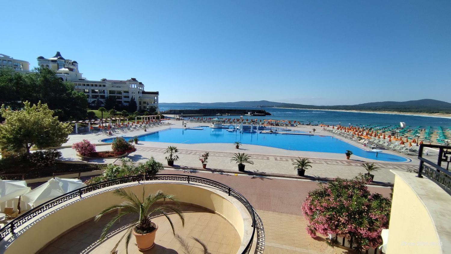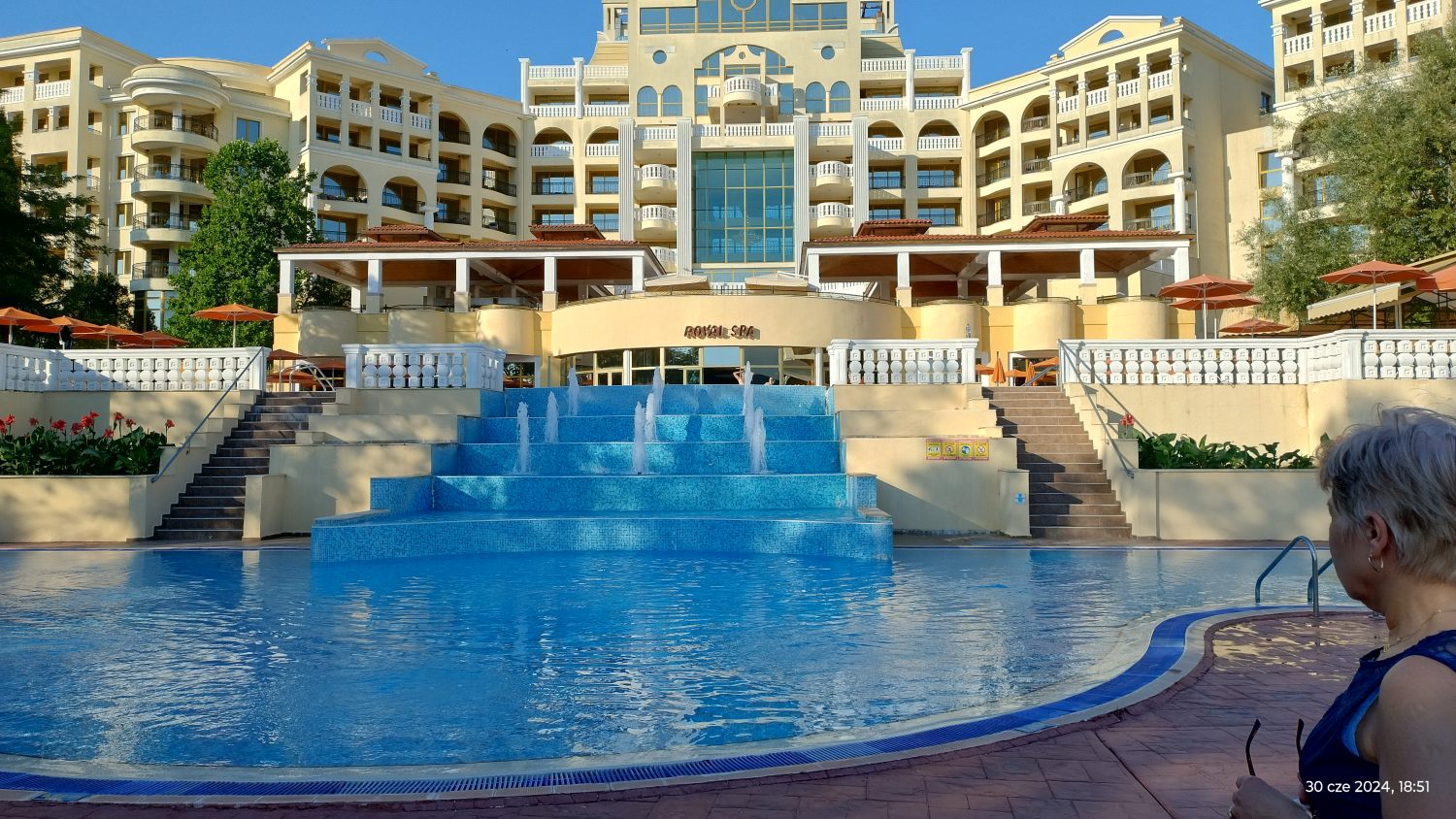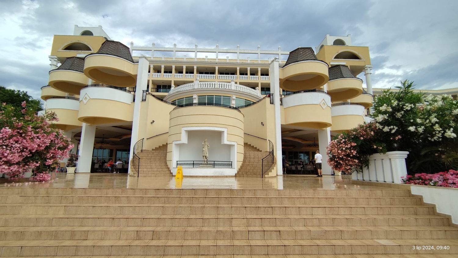 Hotel pod nazwą "Duni Royal Resort" wchodzi w skład zespołu kilku budynków a raczej hoteli. Mogliśmy korzystać prawie z wszystkich basenów, restauracji i barów. Nasz basen przed hotelem miał 50 metrów szerokości, wokoło leżaki z parasolami. Masz pokój o nr 5532 miał okna nie w stronę morza lecz przeciwną i dobrze bo słońce nie prażyło w okna.