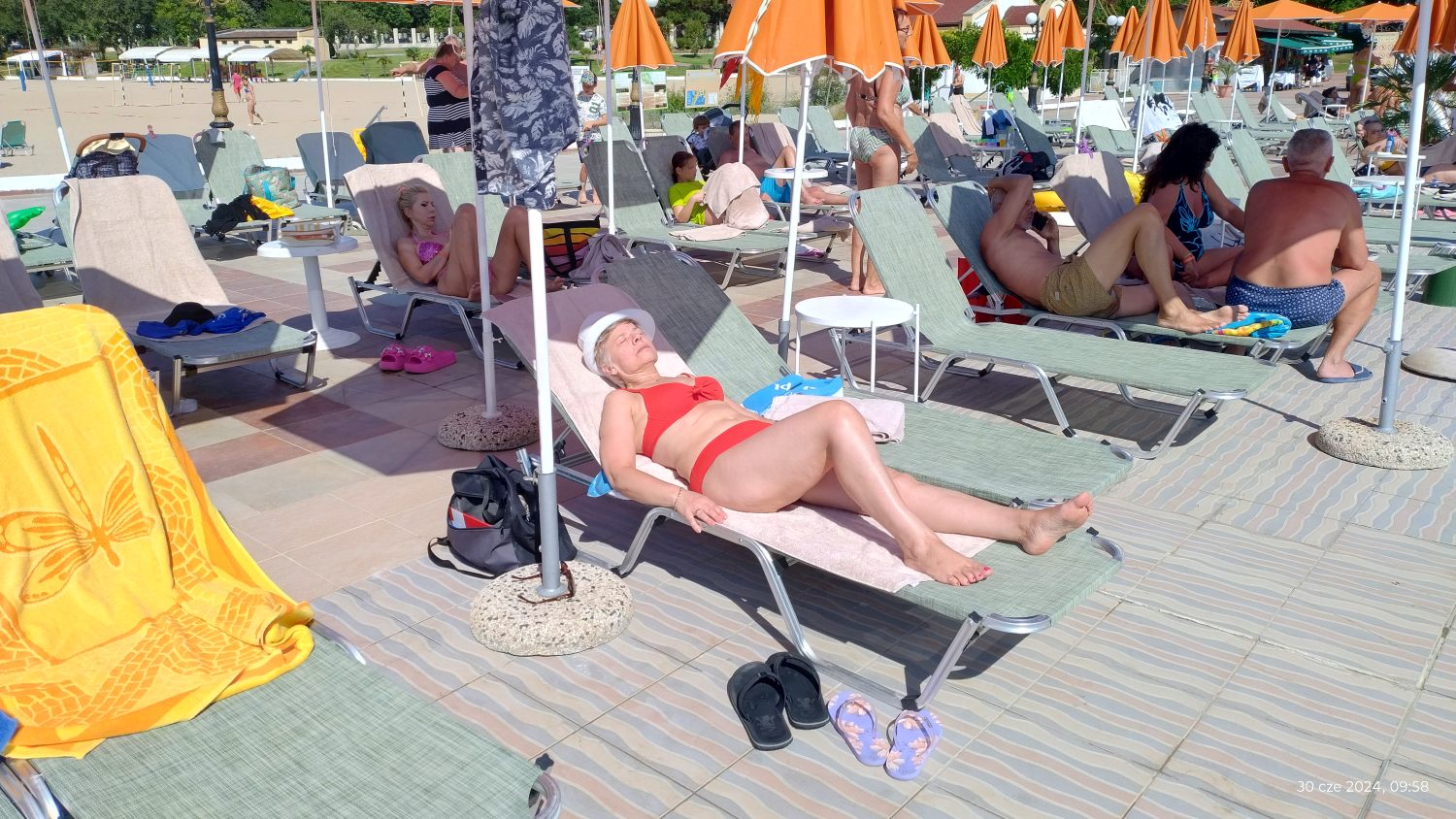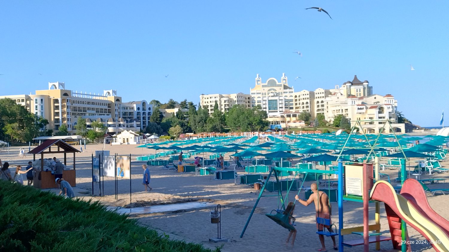 Morze - dostęp do morza był praktycznie bezpośredni, plaża szeroka, piaszczysta, leżaki i parasole bezpłatne, woda płytka, po wypłynięciu 50 m w morze miała głębokość 1,2 m. Nie była idealnie czysta ale i nie brudna. Nieraz pojawiały się fale które ściągały do wody dzieci i dorosłych by przeskakiwać przez nie. Ratownicy obserwowali otoczenie od 9:00 do 18:00. Można było wynająć przejażdżkę na pontonie lub skuterem, były jeszcze deski i żagle.