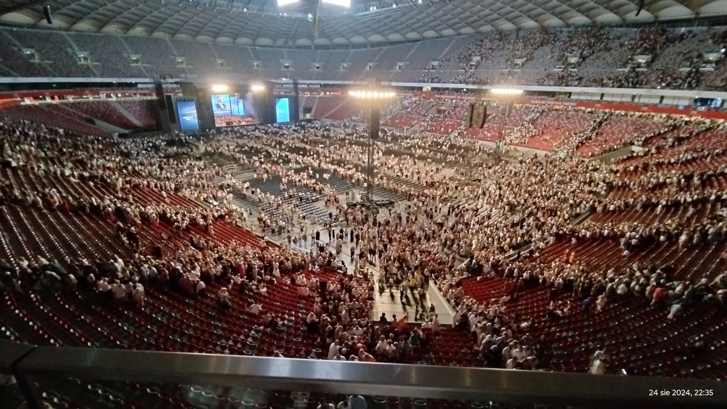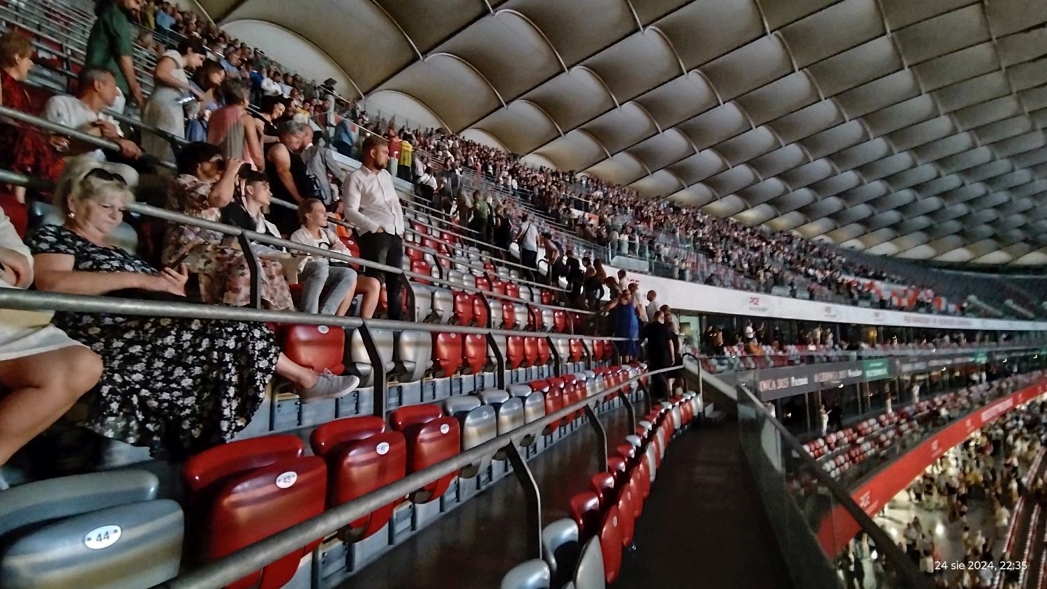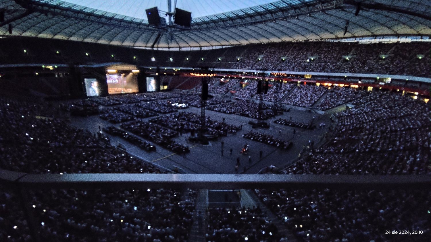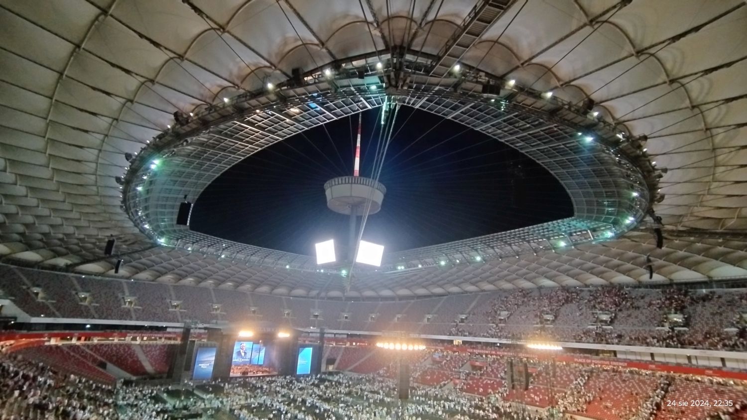 Tramwajem udaliśmy się na PGE Narodowy a o 19:00 zajęliśmy nasze miejsca, sektor G33. Koncert rozpoczął się o 20:00 Matteo Bocelli zaśpiewał sześć piosenek, ostatnią „Falling Back” wraz z naszą Sanah. Potem na scenę wszedł Andrea Bocelli, który w tym roku obchodzi 30-lecie swojej pracy. Koncert składał się z dwóch części z 15 min. przerwą. Andrea zaśpiewał m.in. "O soave fanciula", "Mamma", "Vivo per lei", "Canto della terra", "Granada", "Titanium". Podczas koncertu Andrei Bocellego wystąpiła jeszcze rumuńska śpiewaczka Cristinę Pasaroiu, włoska skrzypaczka Rusandę Panfili wykonując Czardasza.
