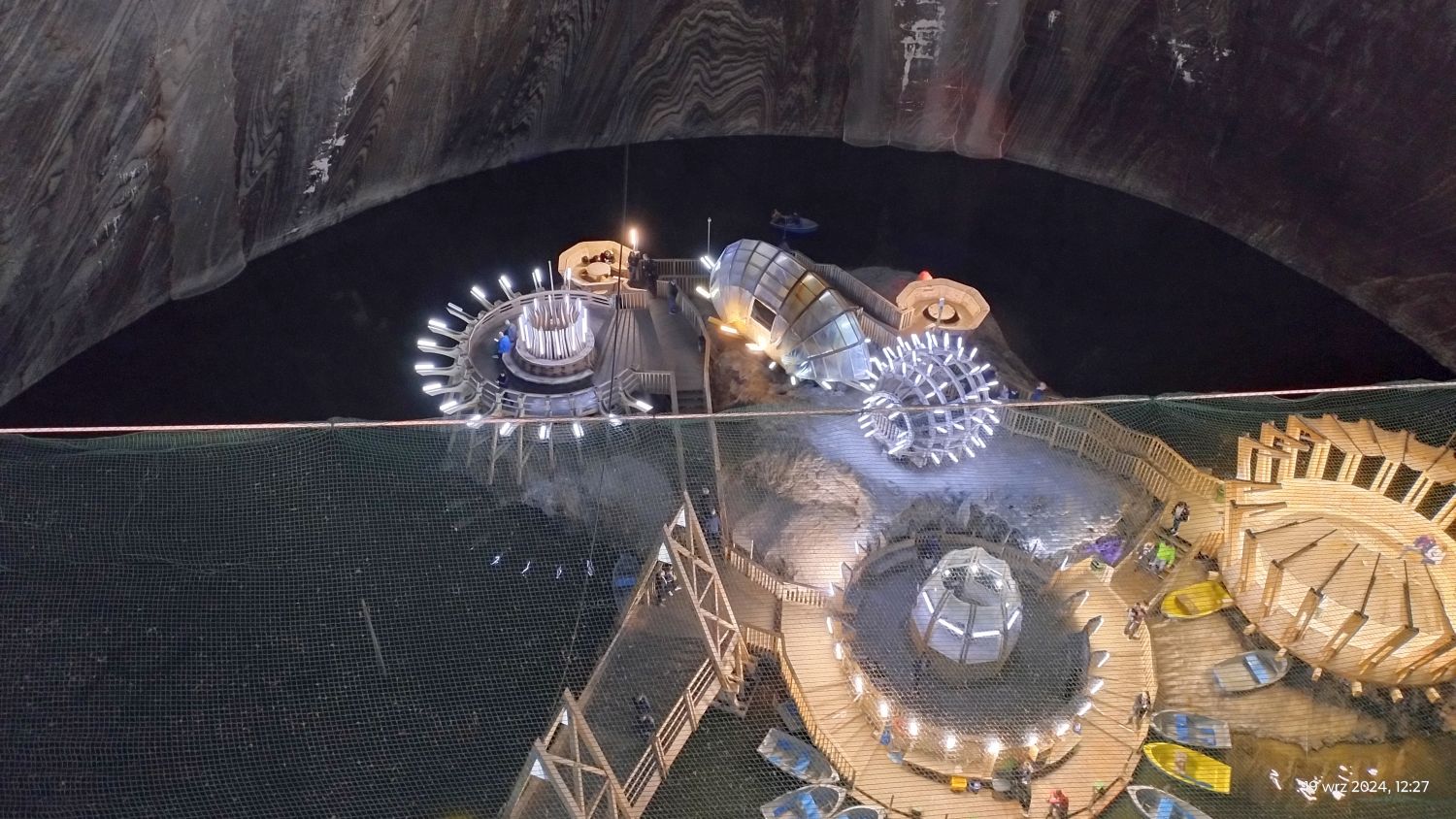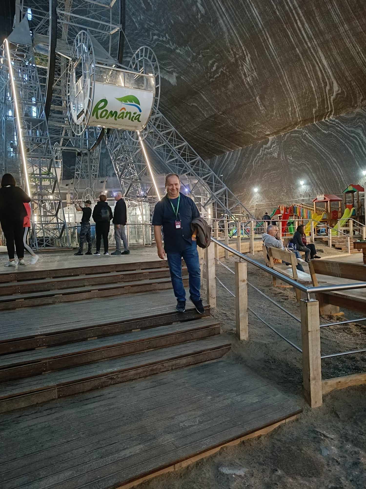 Następnym miejscem do zwiedzania była kopalnia soli w Turda. Pod ziemią była ogromna sala, 80 m wysokości z jeziorkiem na samym dole gdzie można było popływać łódką. Ja schodziłem schodami około 13 pięter choć można było też windą.