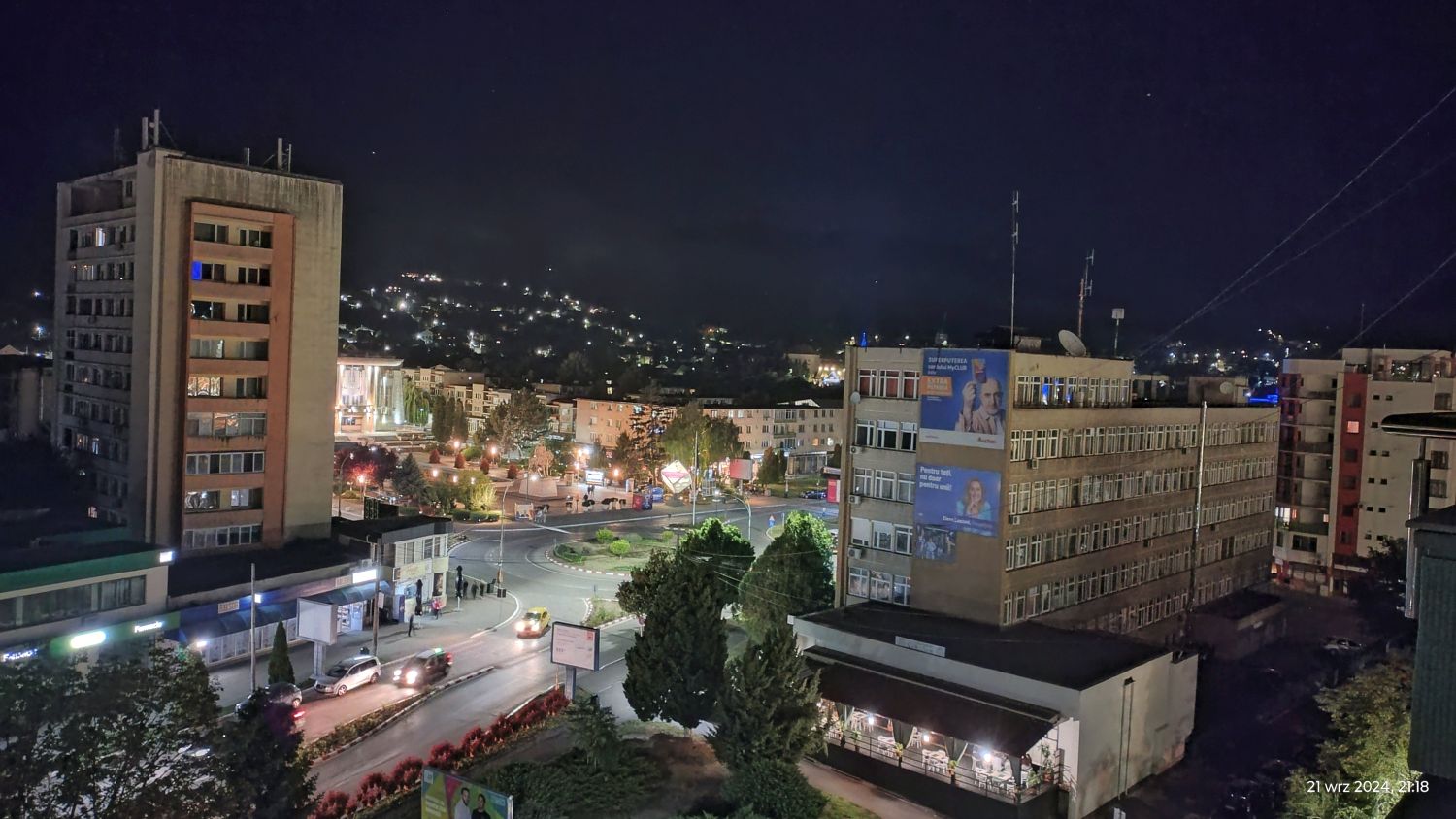 Nocleg w Hotelu Sarmis w miejscowości Deva koło przepięknie podświetlonej cerkwi.