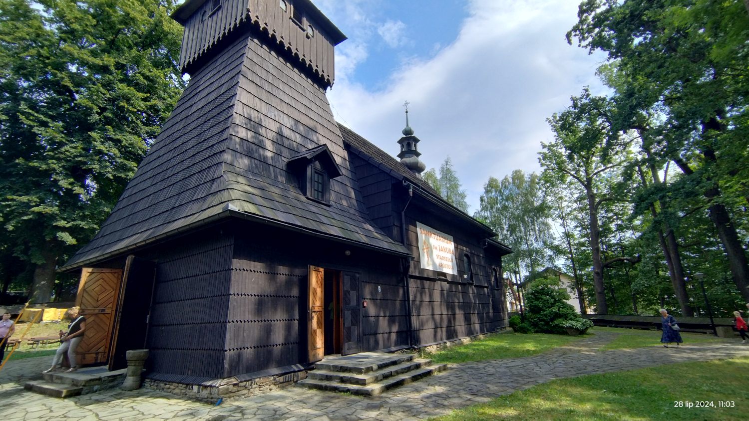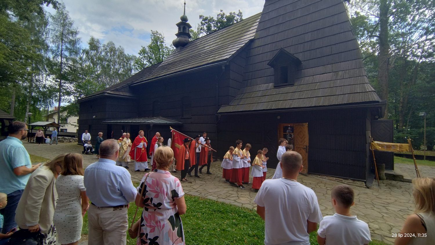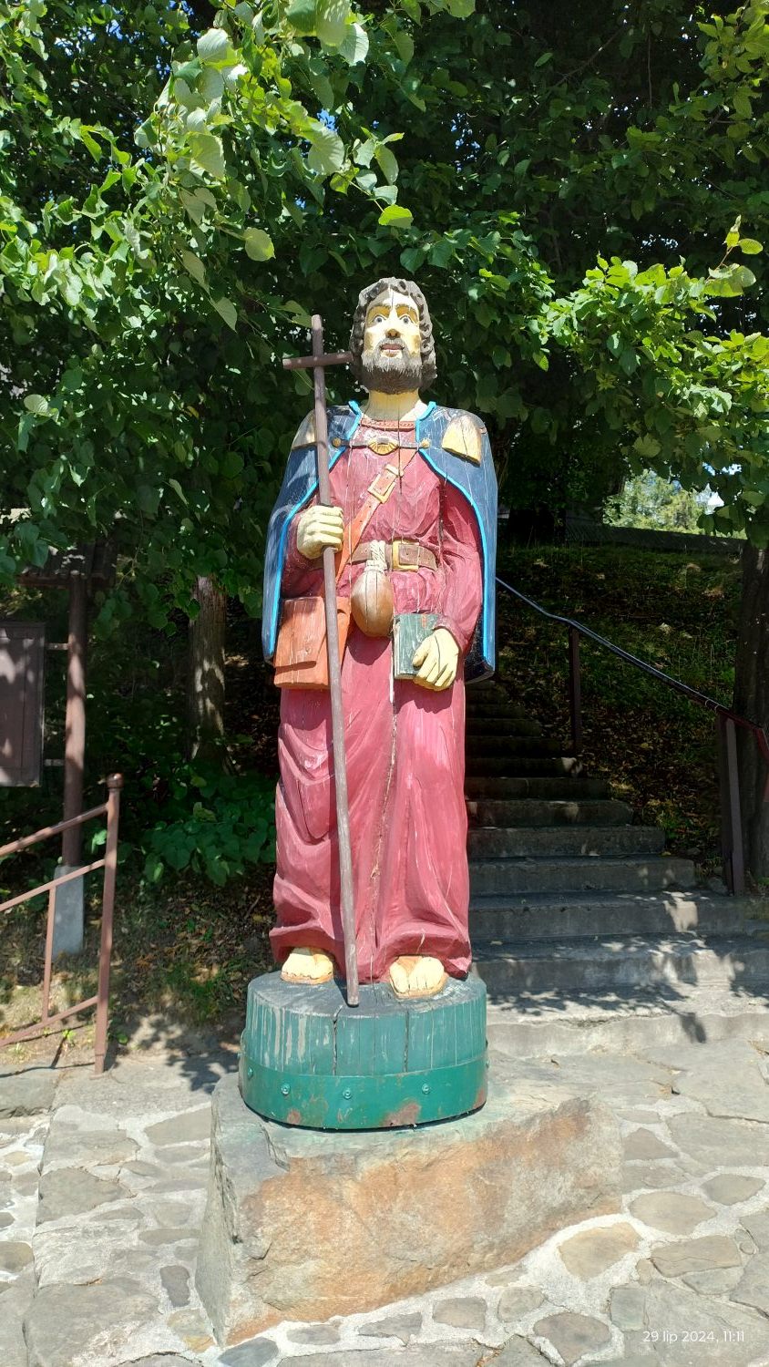Kościół św. Jakuba - odpust pierwszy dzień po przyjeździe była niedziela, więc poszliśmy do kościoła który był poniżej naszego zamieszkania. Był to kościół p.w. Św. Jakuba i był akurat odpust, dlatego msza św. była uroczysta z procesją, to ten św. do którego chodzą pielgrzymi szlakiem, który przebiega przez całą Europę, a jego cel znajduje się w Santiago de Compostela.