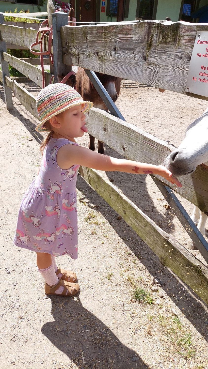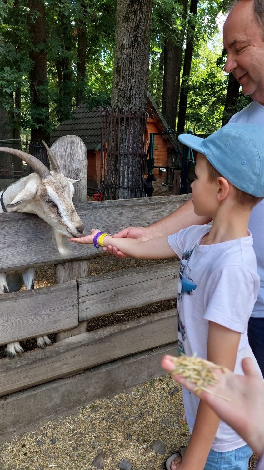 Byliśmy też w mini zoo w Żywcu. W parku miejskim na małej części jest ono zorganizowane. Kupiliśmy karmę i karmiliśmy kozy, konie, osły, króliki i inne zwierzątka tam mieszkające.