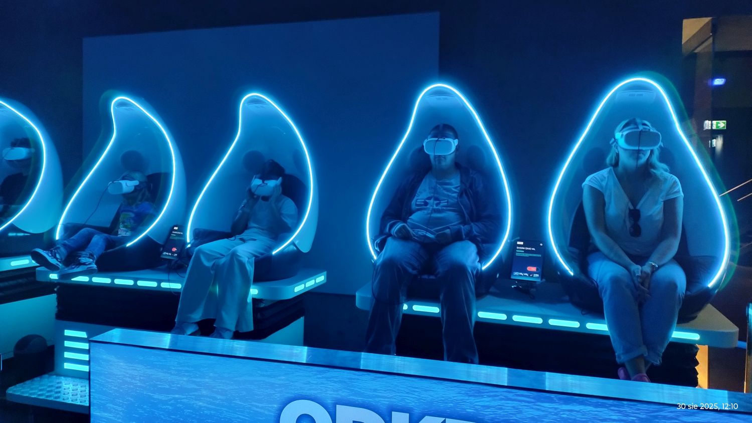 Tramwajem nr 3 pojechaliśmy do Muzeum Etnograficznego a dalej pieszo przez Odrę doszliśmy do Hydropolis (interaktywne muzeum poświęcone wodzie i środowisku) to też spędziliśmy około 4 godzin. Przed wejściem było zorganizowany piknik dla rodzin z dziećmi i nie tylko, można było się napić wody tz. kranówki. W Hydropolis wykupiliśmy seans VR i siedząc w fotelach pływaliśmy z rybami nazwane manty (ma ona dwie płetwy głowowe po bokach głowy). Hydropolis bardzo nam się podobało, dużo efektów medialnych, podobne do Centrum Nauki Kopernik w Warszawie ale od strony wody, środowiska, całej planety.
