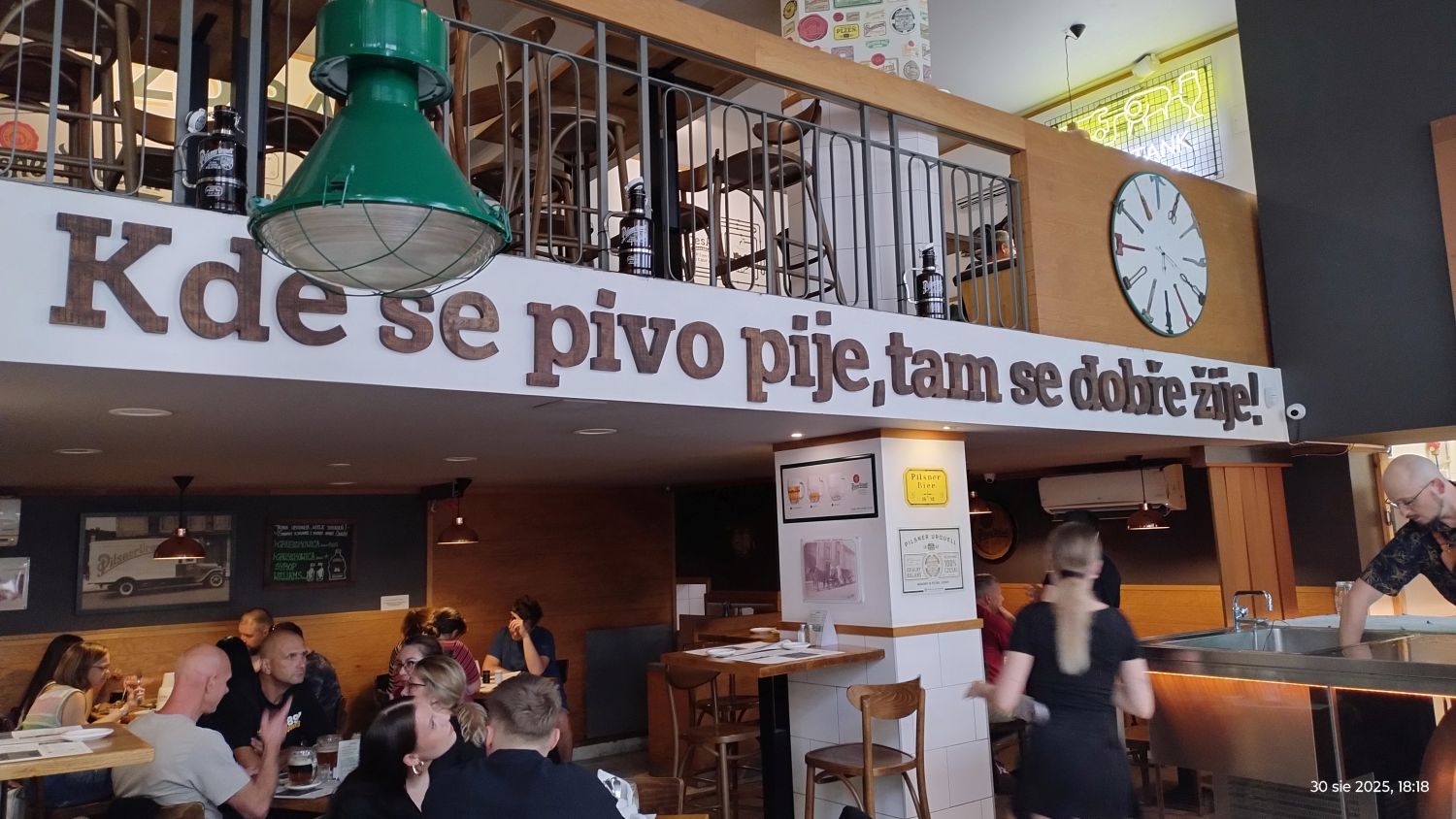 Opera wrocławska i Narodowe Forum Muzyki znajdują się blisko siebie, w NFM wypiliśmy kaweczkę i niestety zwiedziliśmy tylko korytarze bo już przygotowywali się do spektaklu. Operę też oglądnęliśmy tylko zewnątrz, ogromny gmach. Niedaleko znaleźliśmy Czeską restaurację gdzie zjedliśmy zupę "czosnyczkę", prażony syr i piweczko. Był tam napis "Kde se pivo pije, tam se dobre zije".