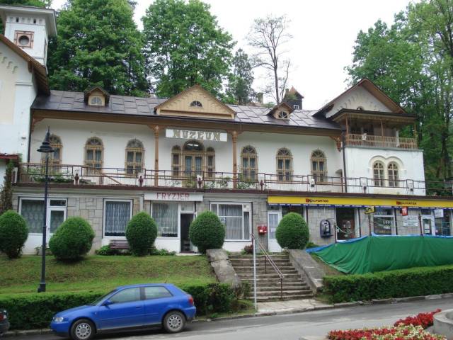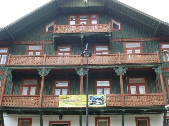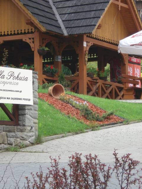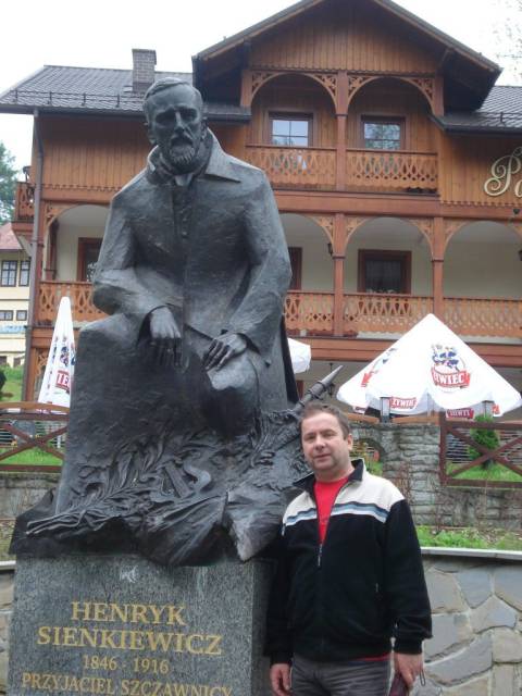 W piątek po śniadaniu poszliśmy zwiedzać miasteczko. "Główna" tak się nazywa główna ulica która przechodzi przez całą Szczawnicę wije się pomiędzi wieloma domami do wynajęcia, pensjonatami, sklepami, małymi budkami z pamiątkami i innymi budynkami użyteczności publicznej. Przy bocznej ulicy prowadzącej do placu Ditla znajduje się pomnik Henryka Sienkiewicza, (nie dowiedziałem sie dlaczego tu stoi) a przy samym placu jest Muzeum (niestety mieliśmy pecha było zamknięte).
