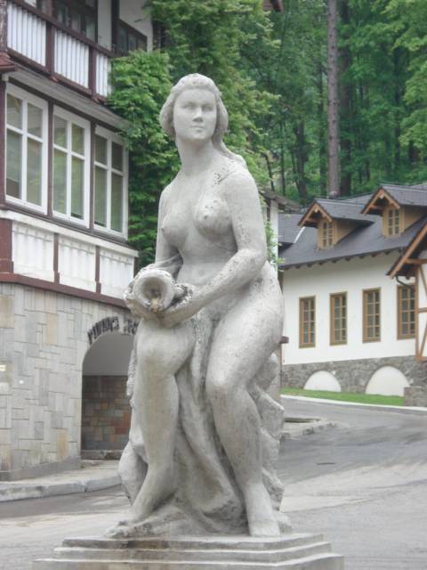 Na środku placu stoi fontanna z naga kobietą wylewającą wodę z dzbana, myślę że ona ma się myć, lecz zapatrzyła sie w dal, może zobaczyła jakiegoś przystojnego młodzieńca (może mnie), albo udaję że chce się myć bo pragnie wdzięczyć sie przed każdym, kobiety to potrafią.