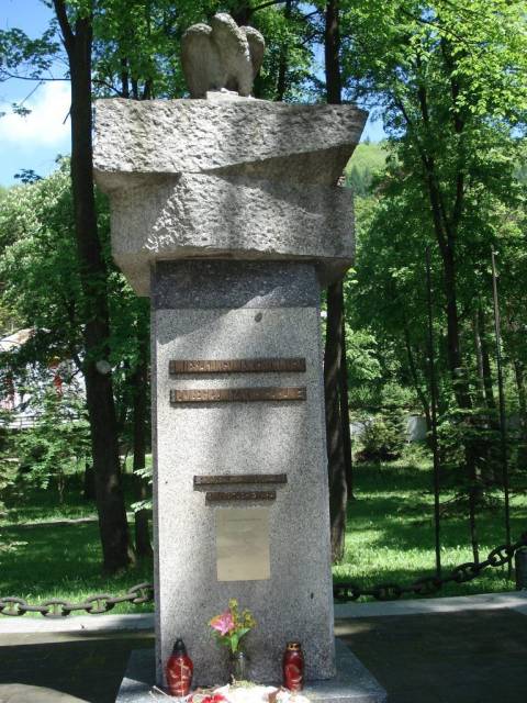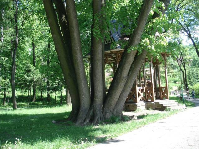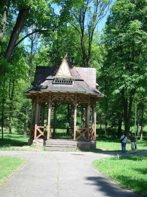 Jadą z Palenicy mijaliśmy rzeczke, która płynie przez miasteczko żwawym nurtem. Przy Głównej ulicy znajduje się park w którym stoli pomnik poświęcony ludziom którzy poświęcili życie za wolność i obronę miasteczka. W parku stoi bardzo ładna altanka wykonana z drzewa a przy niej parę drzew splecionych korzeniami , pierwszy raz widziałem tak rosnące drzewa.