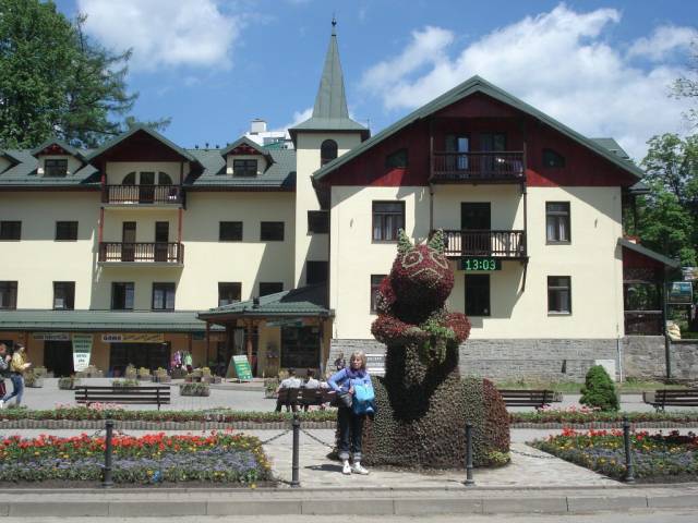 Na początku Szczawnicy-Zdrój stoi transparent powitalny dla gości którzy zaszczycili miasteczko swą obecnością. A w samym centrum tuż przy hotelu w którym nocowaliśmy stoi misiek - ja tak mówiłem - a moja żona że wiewiórka, chyba miała rację. Zwiedzanie miasteczka zajęło nam czas do południa.