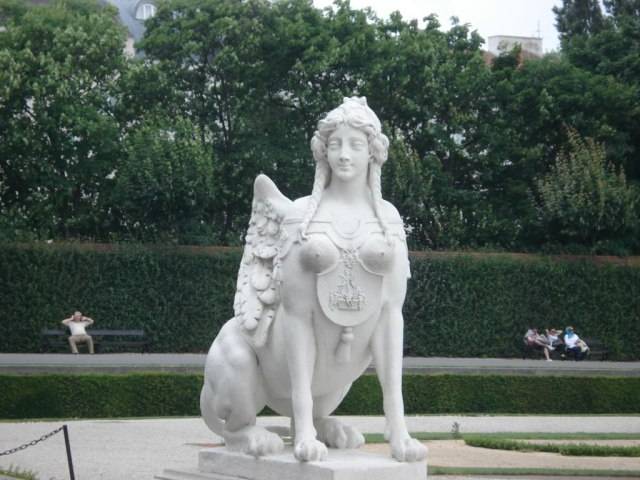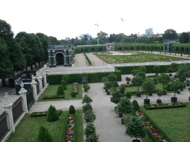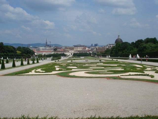 Park w którym znajduje się pomnik Johann Strauss (syna). I Belweder z rabatami.