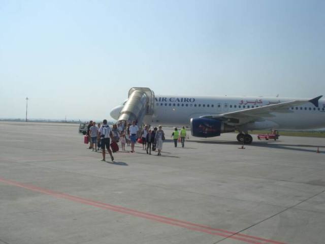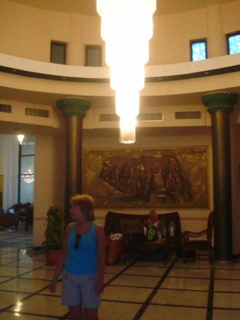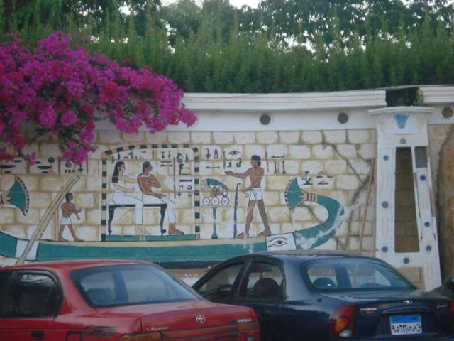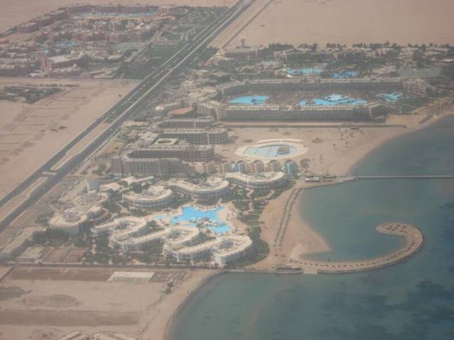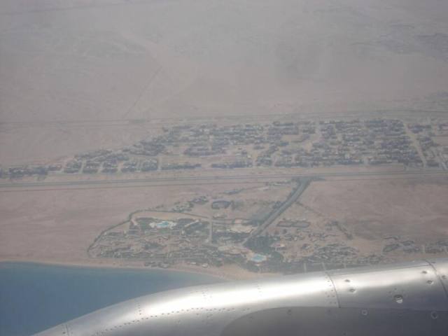 Do Egiptu przylecieliśmy po południu 29 czerwca. Upał pokazał swoją moc było 40 st. Na lotnisku kupiliśmy wizę i już mogliśmy jechać do hotelu. Drogą szeroką prawie jak autostrada jechaliśmy około 15 km od lotniska. Bardzo podobały mi się widoki z samolotu, były takie inne niż w Europie. Wstęga Nilu bardzo oddzielała się od ogromu piachu.