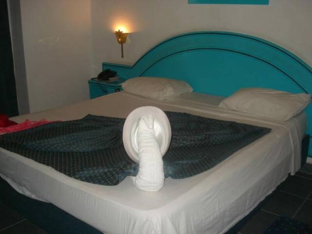 Pokój jaki dostaliśmy spełniał nasze oczekiwania oczywiście takie jakie zapewniają kraje afrykańskie czyli hotel 4 gwiazdkowy tu - to 3 a nawet 2 gwiazdkowy w europie. Była klima, lodówka, telewizor a nawet sejf bez dopłaty i ogromne małżeńskie łóżko. Za drobnym napiwkiem zostawianym na łóżku, nasz hotelboys pięknie ścielił i przyozdabiał nasze łoże i utrzymywał nasz pokój w należytej czystości.