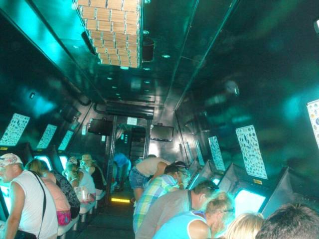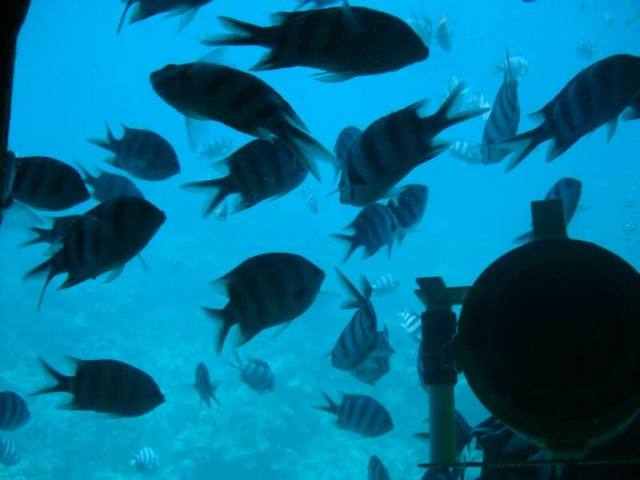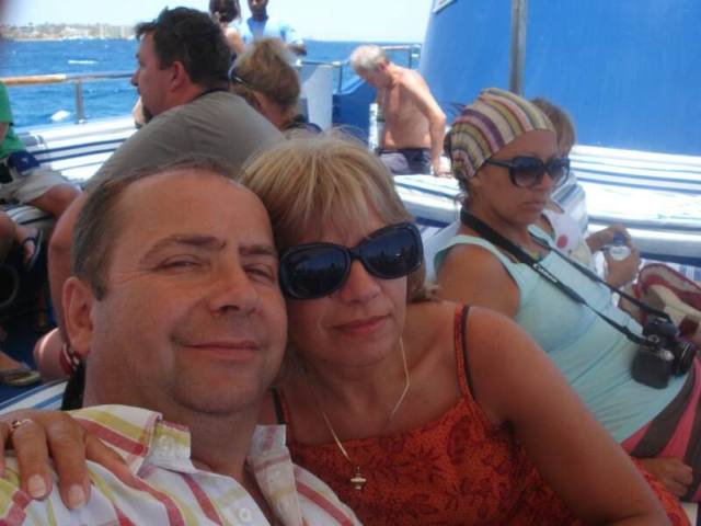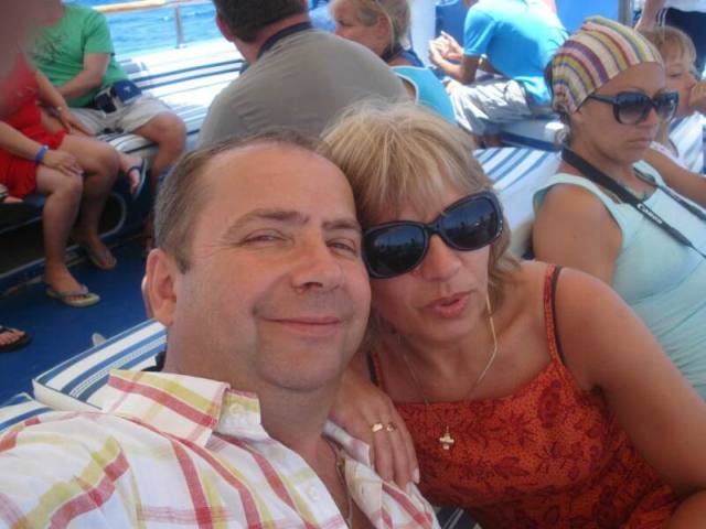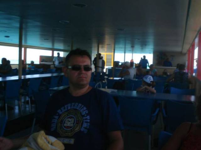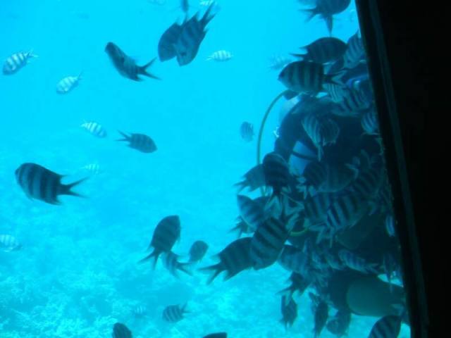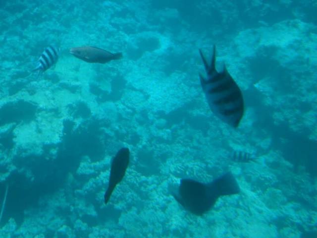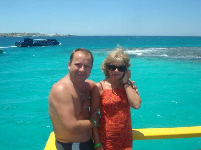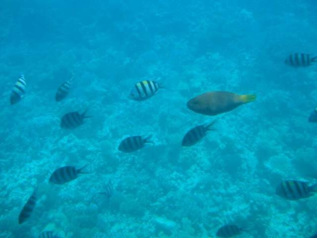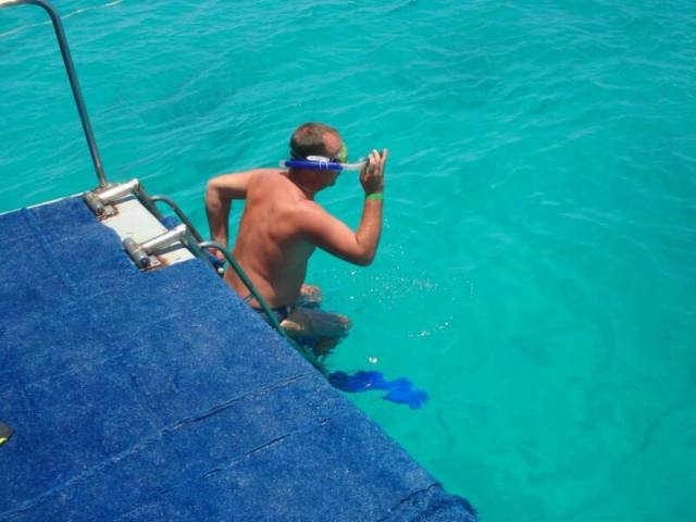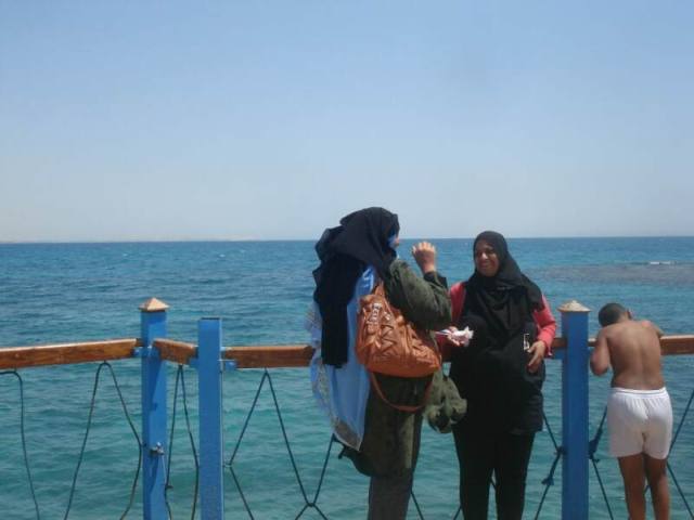 Z naszymi znajomymi poznanymi tu zafundowaliśmy sobie wycieczkę na tz. RYBKI PRZEZ SZYBKI. Zawieźli nas do Hurghady minibusem a tam na statek który pod pokładem miał szyby przez które oglądaliśmy rafę i ryby. Był też postój i razem z Wojtkiem poszliśmy pływać, ja pierwszy raz w płetwach byłem.