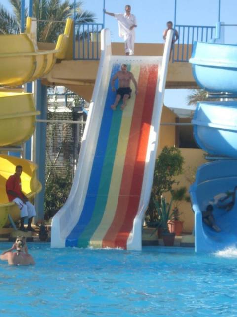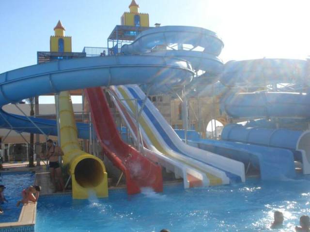 Basenów mieliśmy do dyspozycji dwa a trzeci był przy akuaparku. Nie można nic złego powiedzieć o nich, były utrzymywane w czystości wystarczającej. Oczywiście był leżaki i parasole. Koło każdego basenu był barek z napojami zimnymi i alkoholowymi od 10:00 do nie pamiętam, barmani nalewali wszystko co się chciało od piwa przez wino do mocnych trunków, była też kawa i herbata. W akuaparku na zjeżdżalniach można było szaleć do woli choć ja po trzech zjazdach miałem dość.