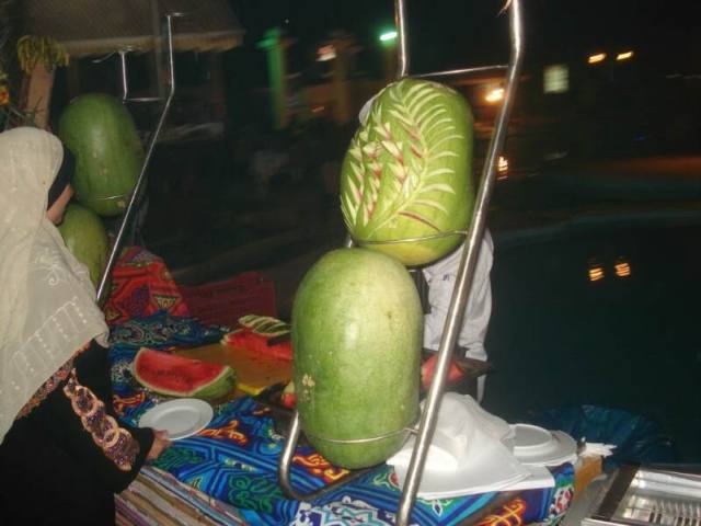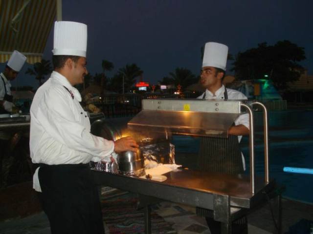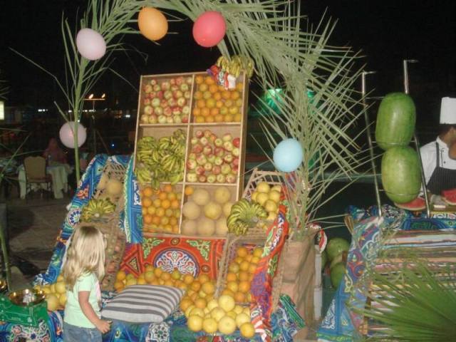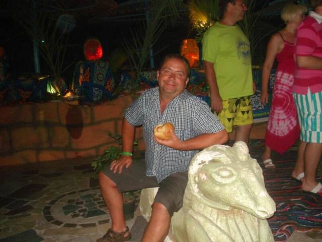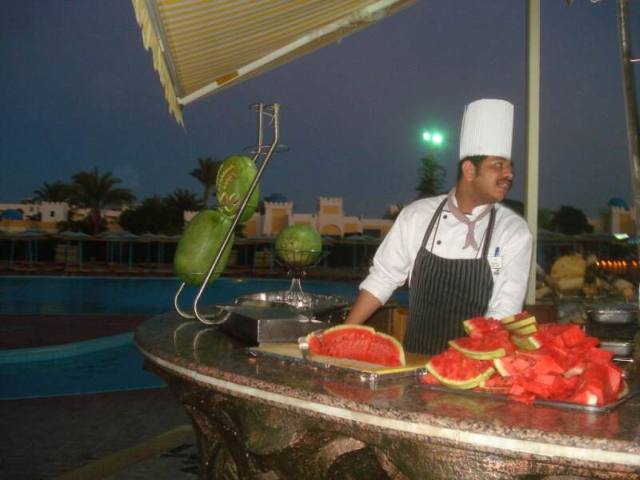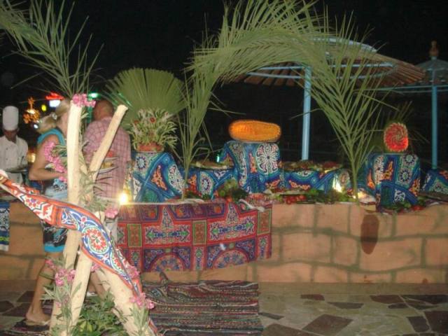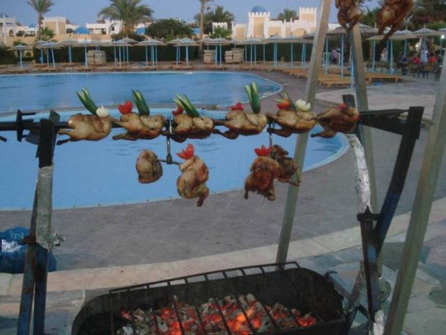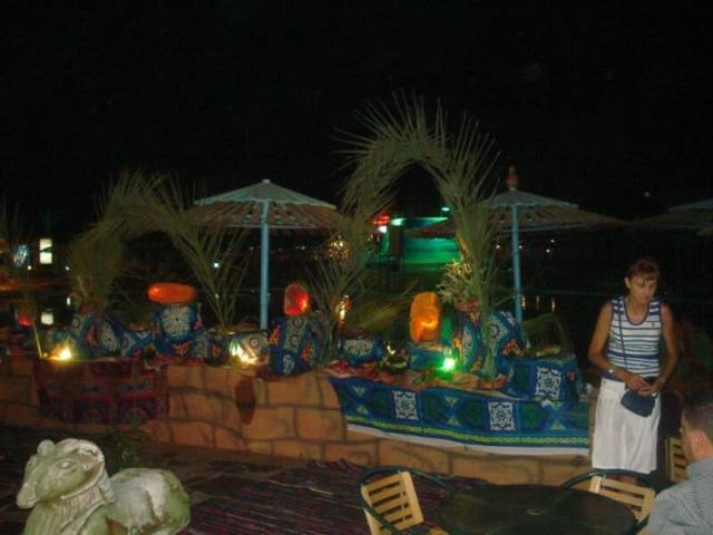 Teraz o jedzeniu. Tu nie było wielkich niespodzianek. Dwie stołówki w których serwowano śniadanie obiad i kolację. Nieraz prowadziliśmy boje o dostanie stolika i jedzenia zbyt dużo ludzi chciało jeść o tej samej porze. Czystość stołówki oraz naczyń dla nas europejczyków dawała wiele do życzenia ale szło przeżyć. Mimo różnorodnego jedzenia nie wszystko nadawało się do konsumpcji. Sprawa zachorowania na tz. Zemstę Faraona nie pozwalała jeść wszystkiego co było myte w wodzie i nie gotowane. Ale i tak wiele osób cierpiało na dolegliwości wymagające toalety. Nas potraktowała ta zemsta stosunkowo łagodnie, nie musieliśmy siedzieć w hotelu i patrzeć czy drzwi łazienki się nie zatną. Tylko lek kupiony tu w Egipcie pomaga na bóle brzucha.