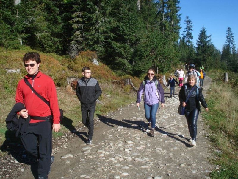 W pierwszy dzień po śniadaniu pojechaliśmy na Wierch Poroniec, zostawiając auto na parkingu poszliśmy szlakiem na Rusinową Polanę.
