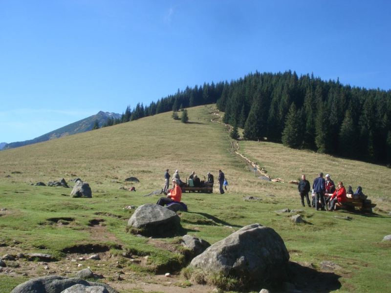 Idąc poprzez Rówień Waksmudzką a następnie pierując się w stronę Wodogrzmotów Mickiewicza dotarliśmy do Polany pod Wołoszynem. A stąd to już blisko idąc czarnym szlakiem do Rusinowej Polany gdzie zjedliśmy po grilowanym oscypku.