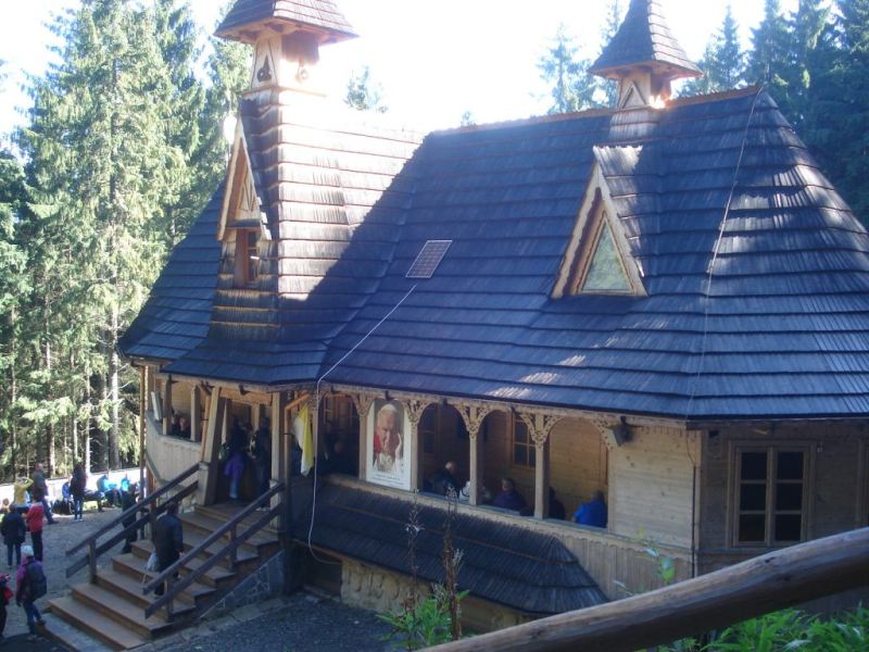 Po krótkim odpoczynku udaliśmy sie do Sanktuarium Matki Bożej Królowej Tatr inaczej nazywanej Matki Bożej Jaworzyńskiej. O godzinie 11:00 rozpoczęła się Msza Św. ludzi było sporo więc musieliśmy uczestniczyć we mszy będąc na zewnątrz. Po mszy poszliśmy na ciepłą cherbatkę serwowaną w piwnicy kościoła, smaczna była.
